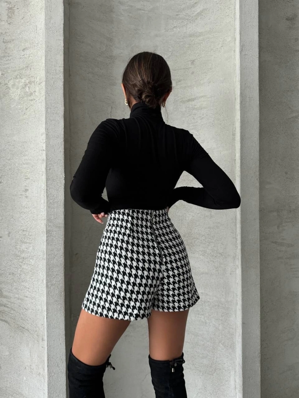 Bu sezonun trend parçalarından biri olan iki düğmeli kaz ayağı desenli CH kumaş şort etek siyahbeyaz renk seçeneğiyle gardırobunuza şıklık katacak. Ürün, rahat ve şık tasarımıyla dikkat çekiyor.