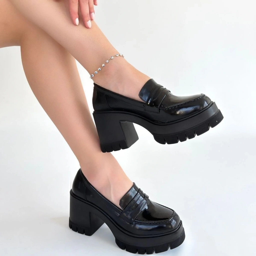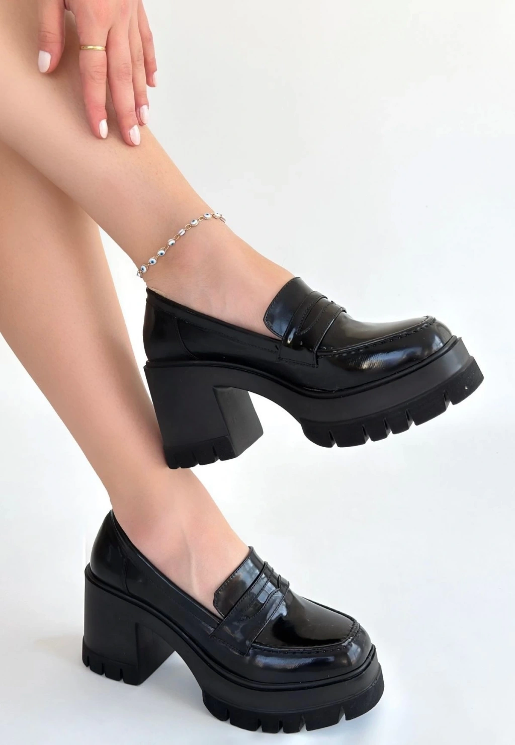 Janes Siyah Rugan Dolgu Topuk Ayakkabı