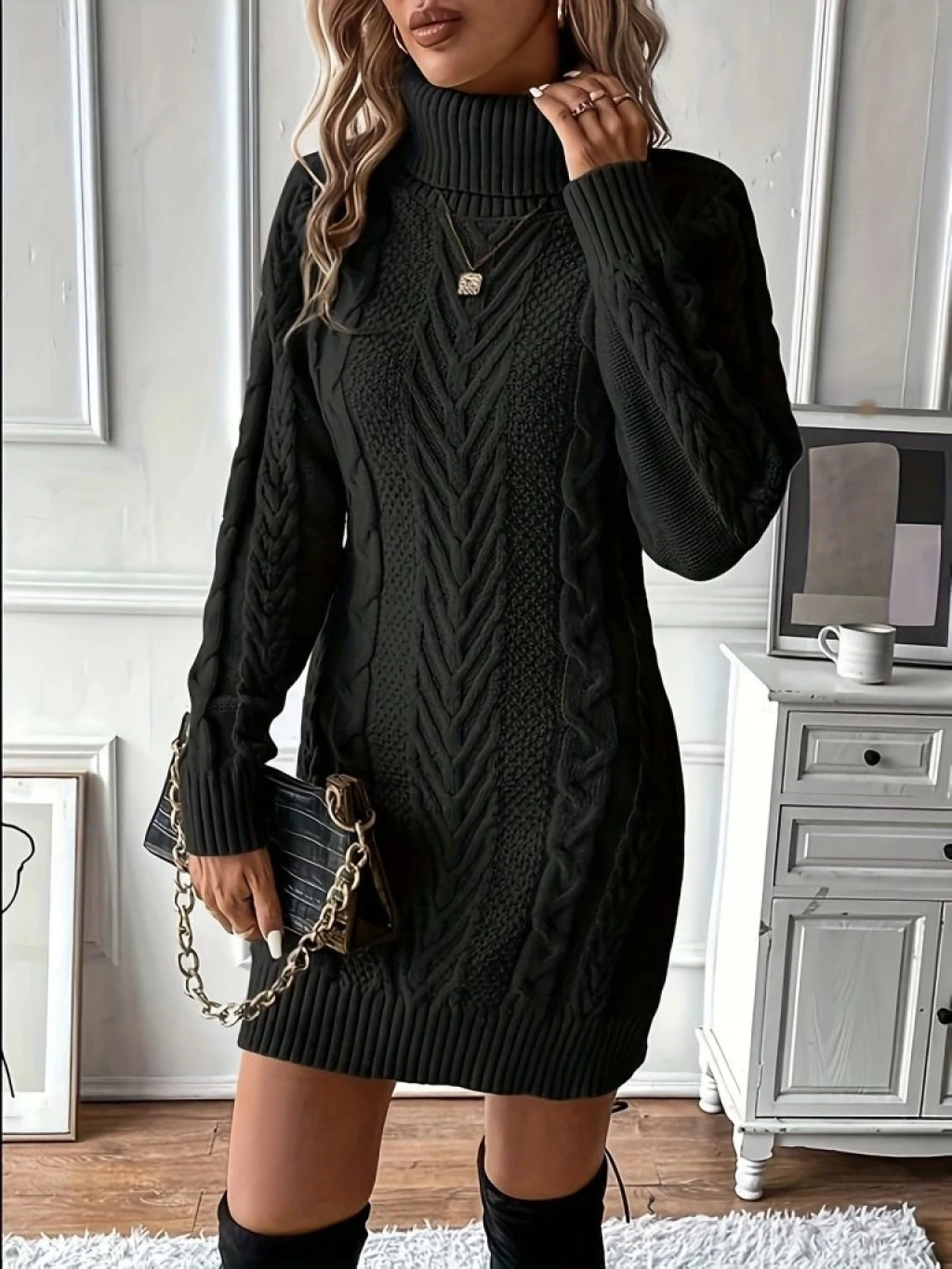 Kadın Balıkçı Yaka Mini Triko Elbise
