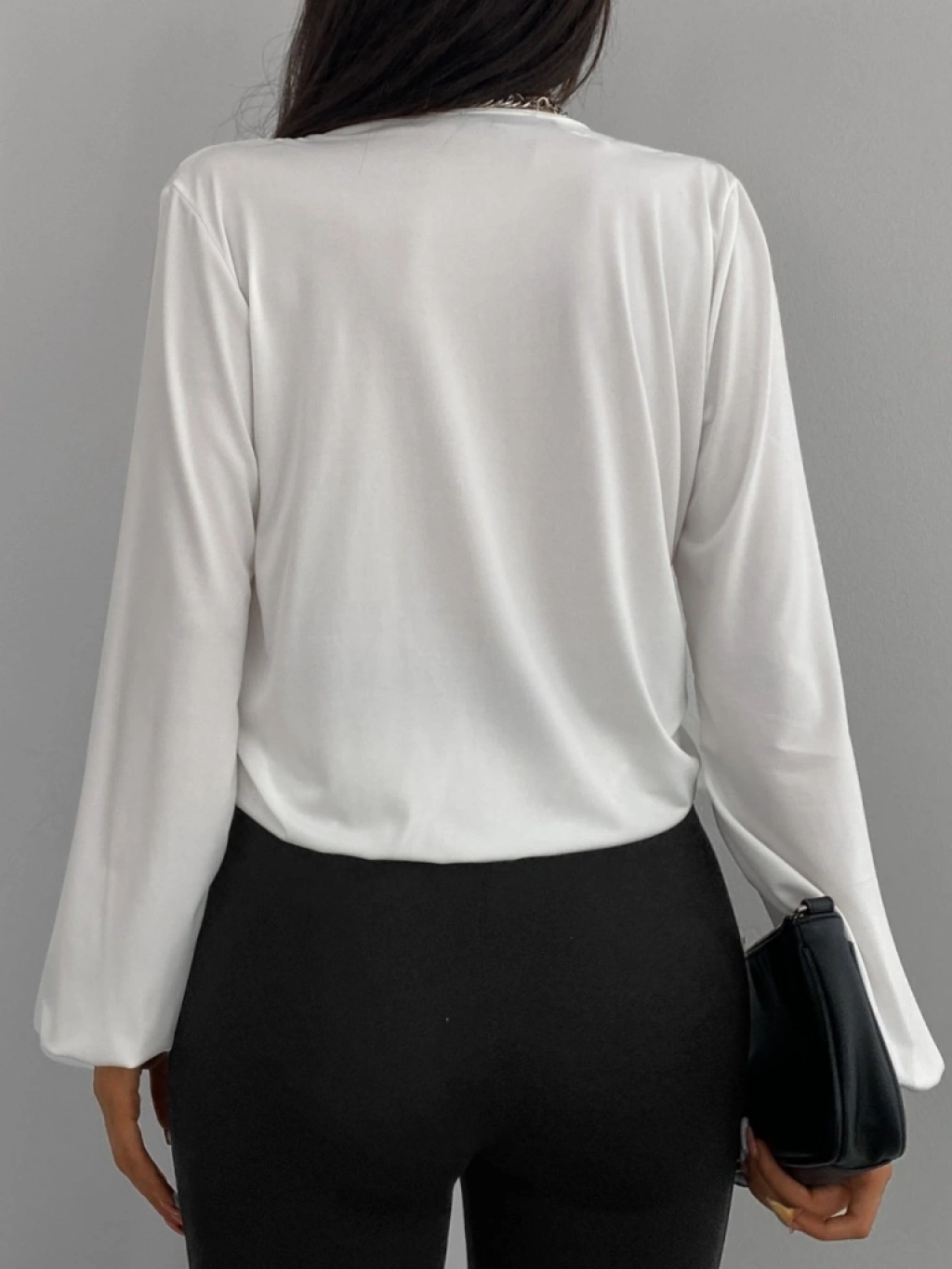 Kadın Beyaz Kruvaze Yaka Sandy Bluz
