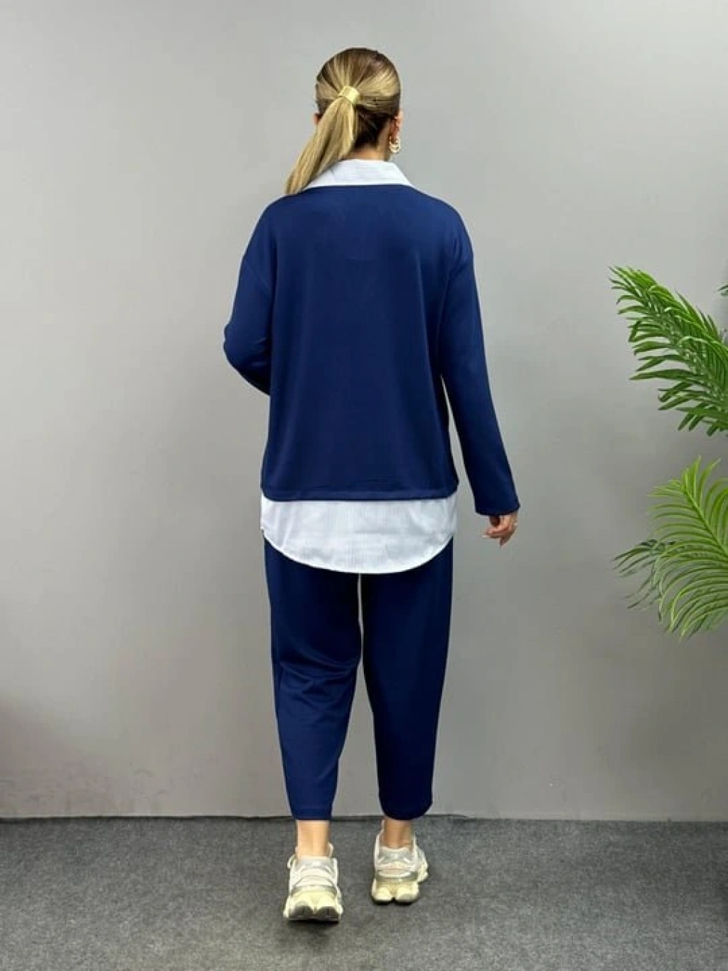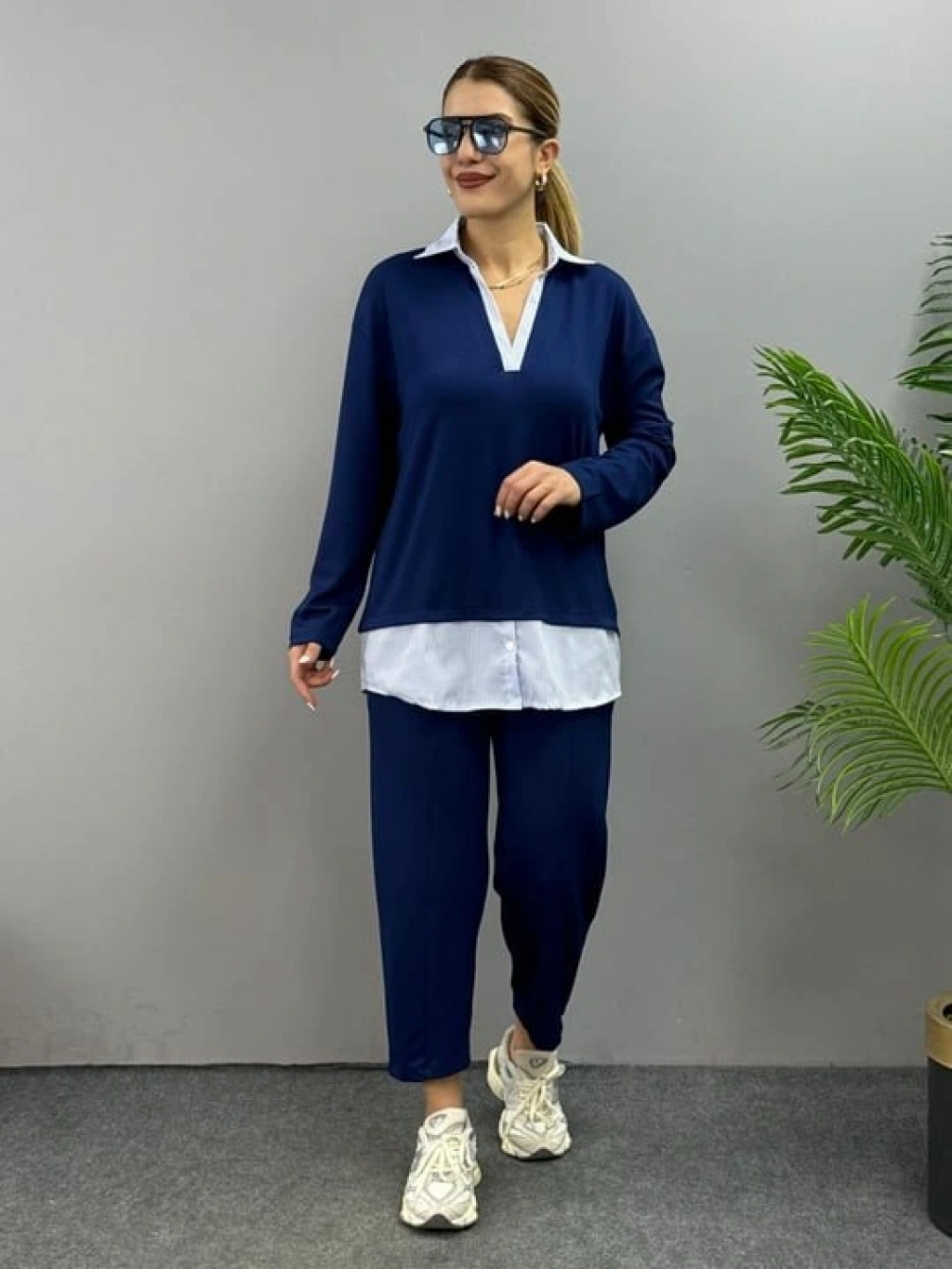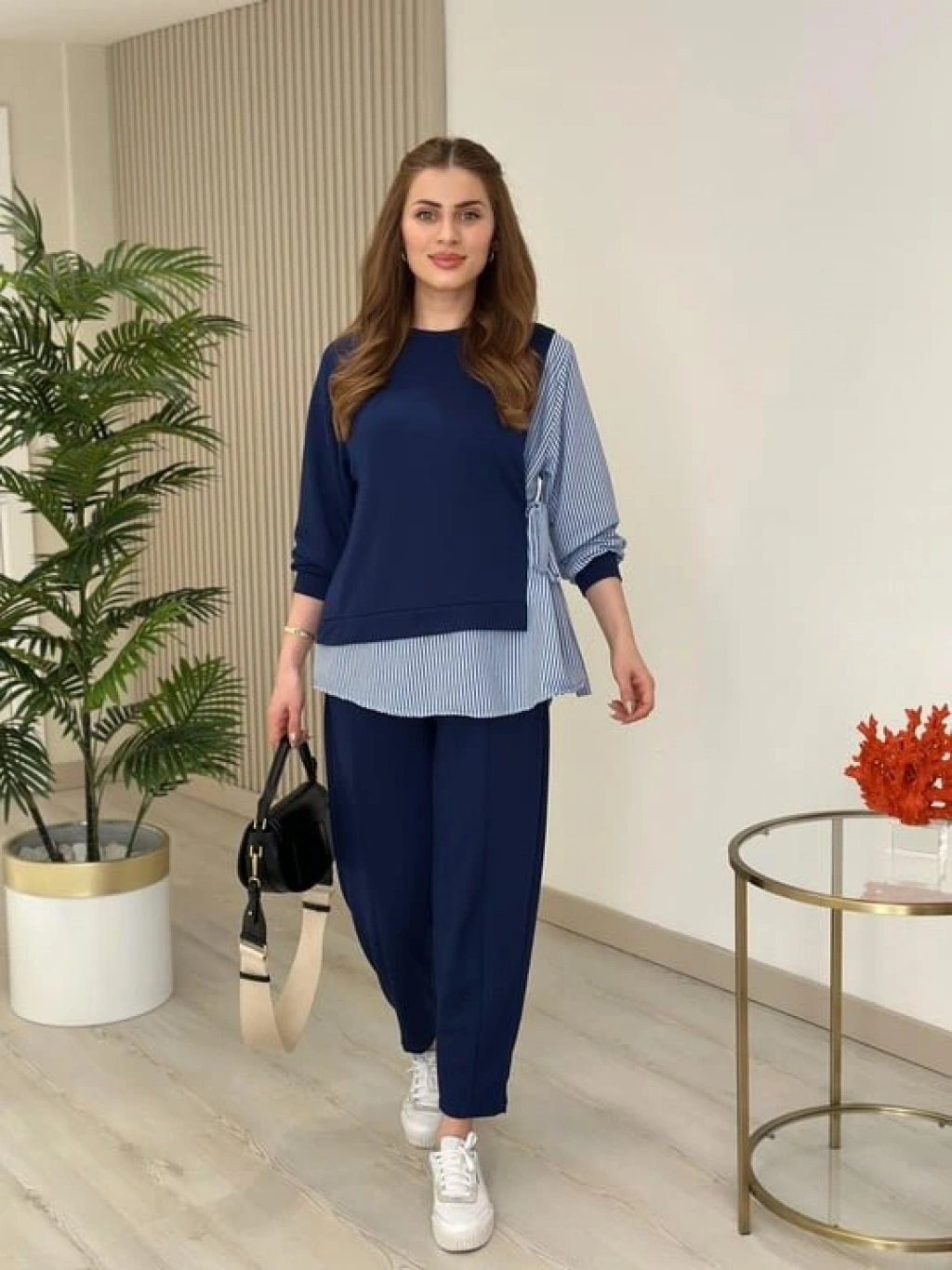 Kadın Gömlek Detay çizgili Yandan Bağlamalı Ikili Takım