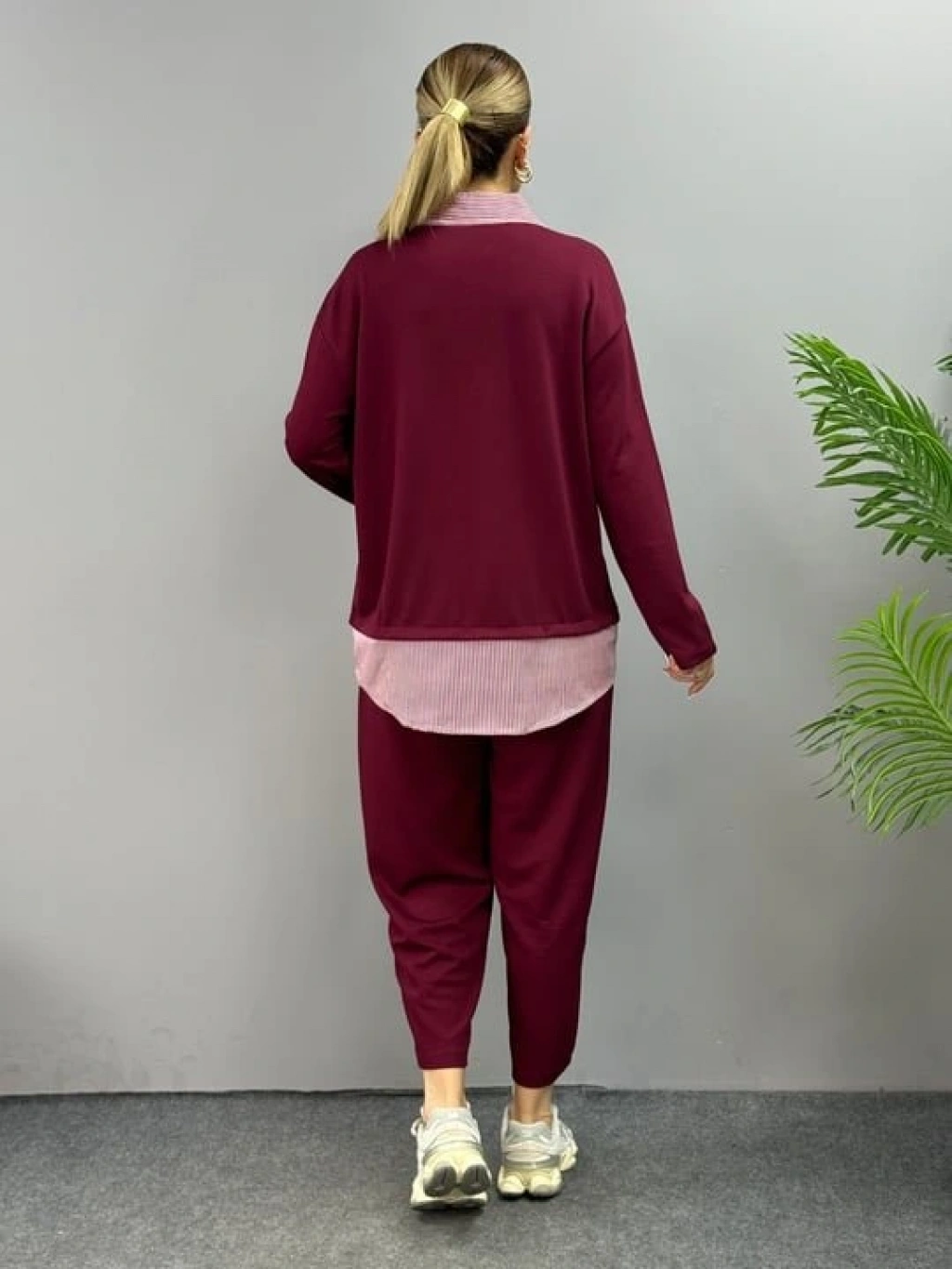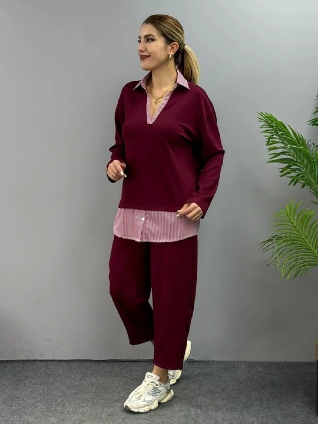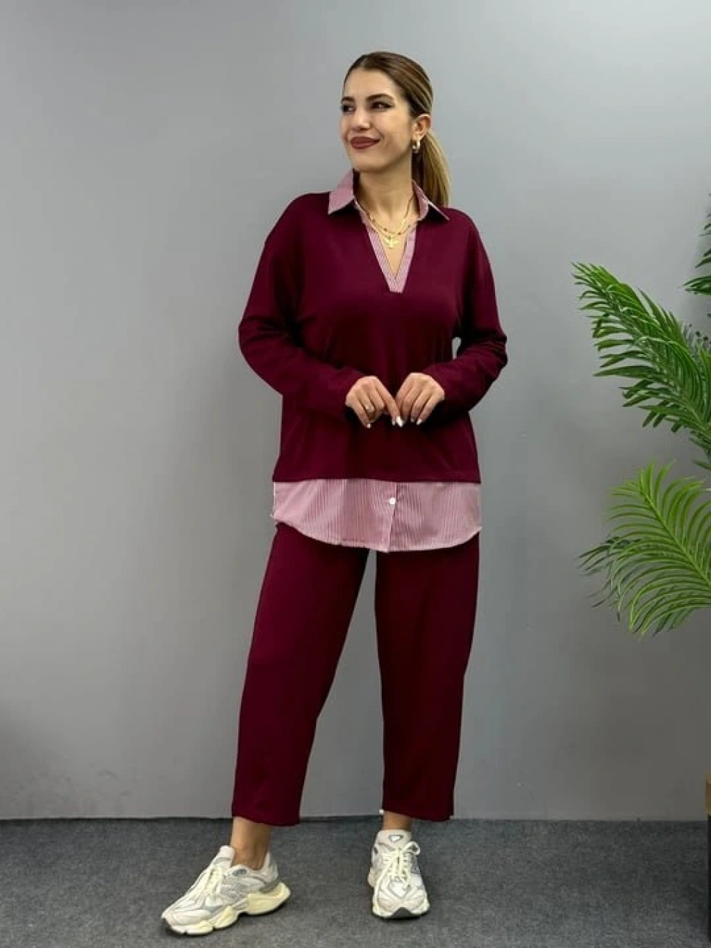 Kadın Gömlek Detay çizgili Yandan Bağlamalı Ikili Takım