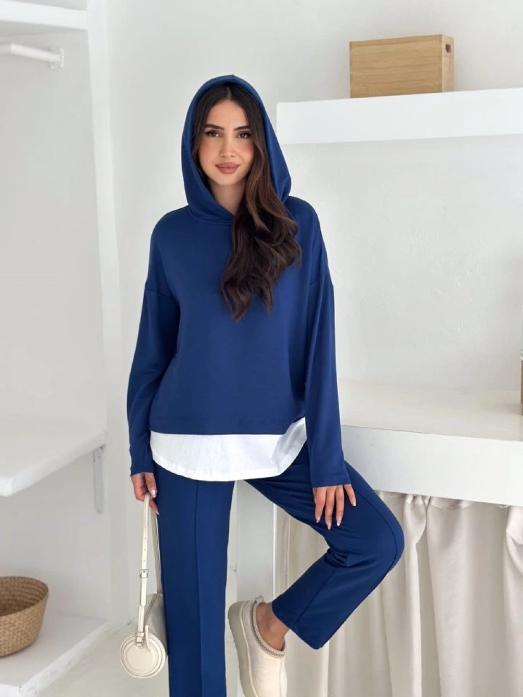 Kadın Kapşunlu Ve Atlet Detaylı Tunik Yüksek Bel Pantolunlu ıkılı Takım