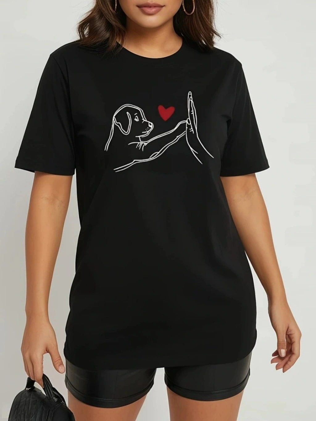 Kadın Kısa Kollu Bisiklet Yaka Köpek Baskılı Viskon Bluz