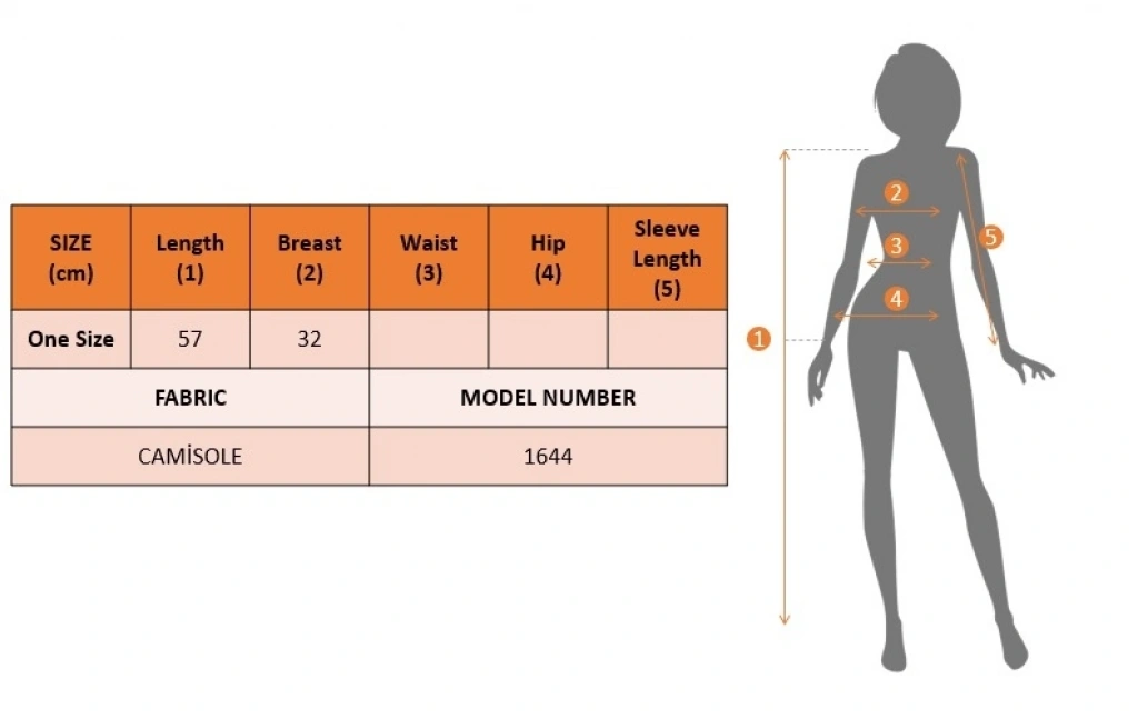 Modelin Ölçüleri: Boy:165, Kg:55, Göğüs:90, Bel:72, Kalça: 100