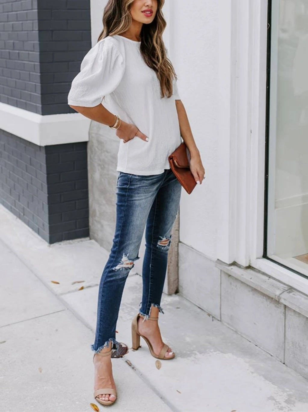 Kadın Kısa Kollu Pileli Balon Kol Bürümcük Bluz