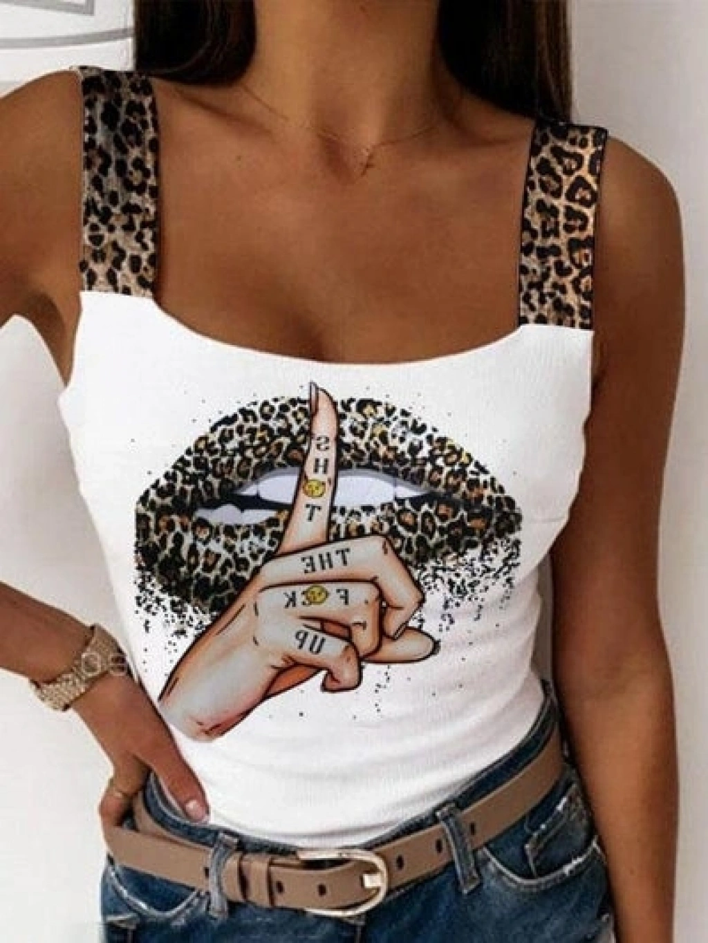 Kadın Leopar Askılı Leopar Baskılı Mikro Kumaş Bluz