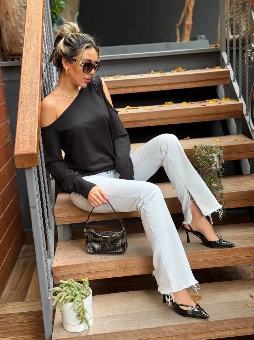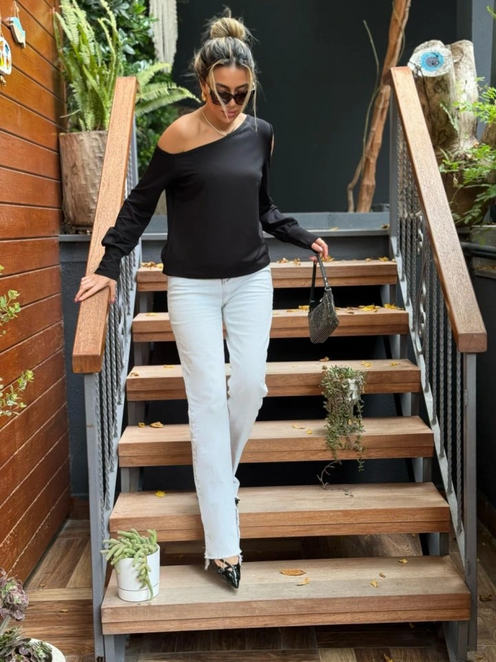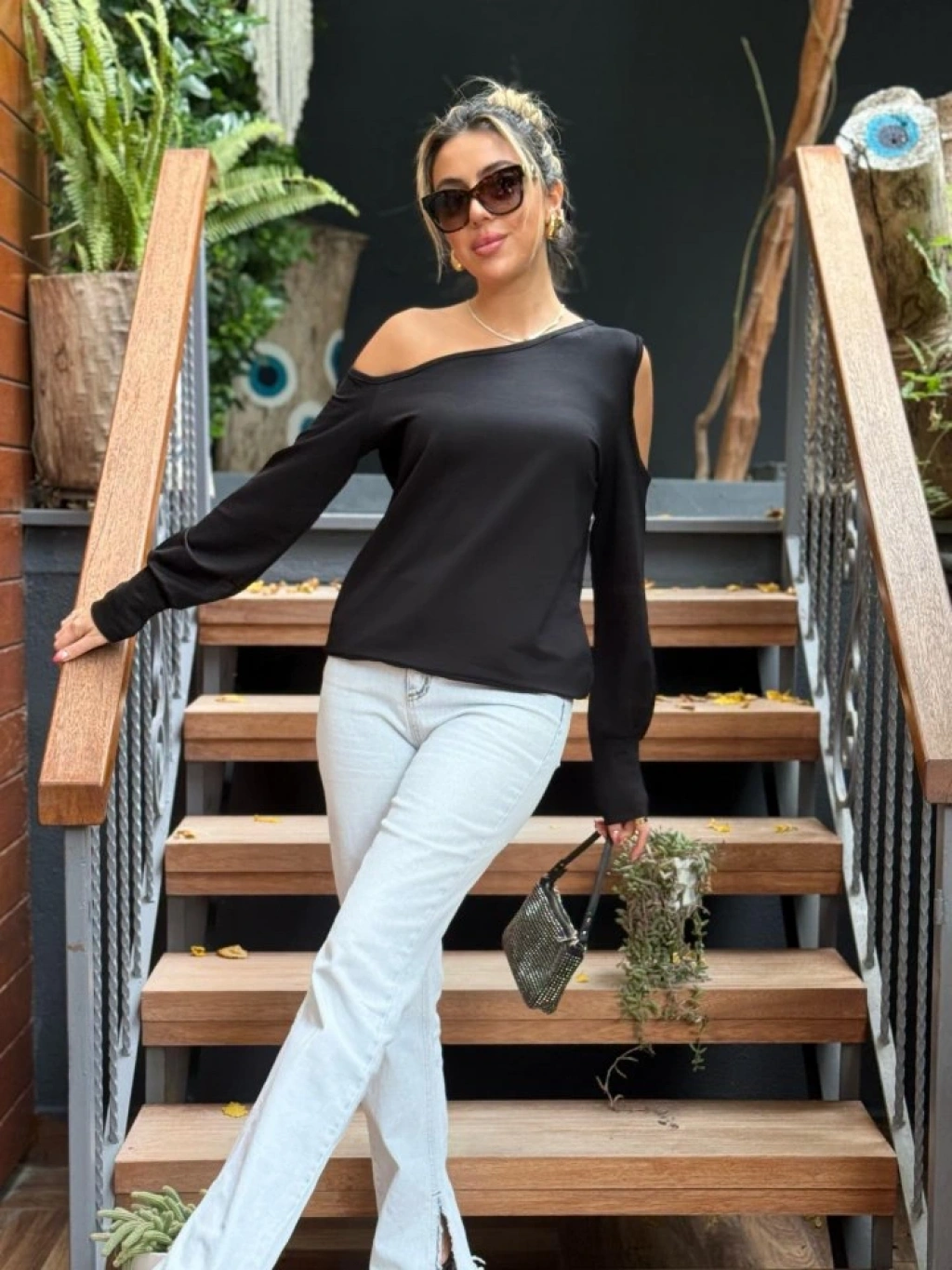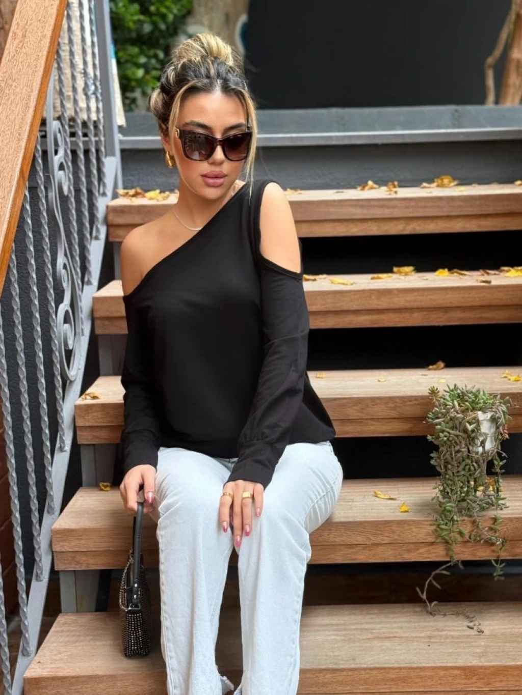 Kadın Omuzdan Açık Askılı Viskon Iki Iplik Bluz