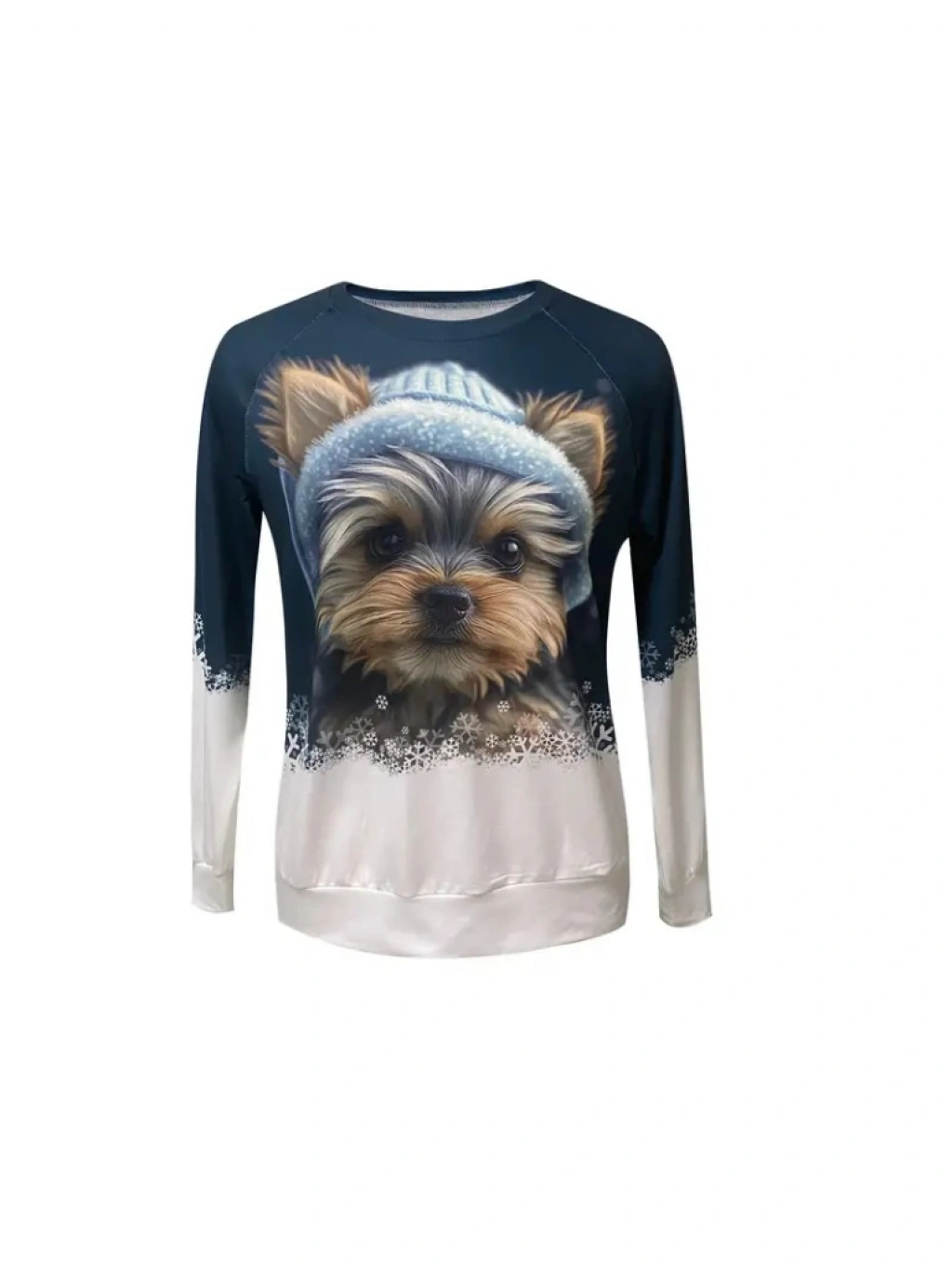 Kadın Uzun Kollu Bisiklet Yaka Köpek Baskılı şardonlu Dalgıç Bluz