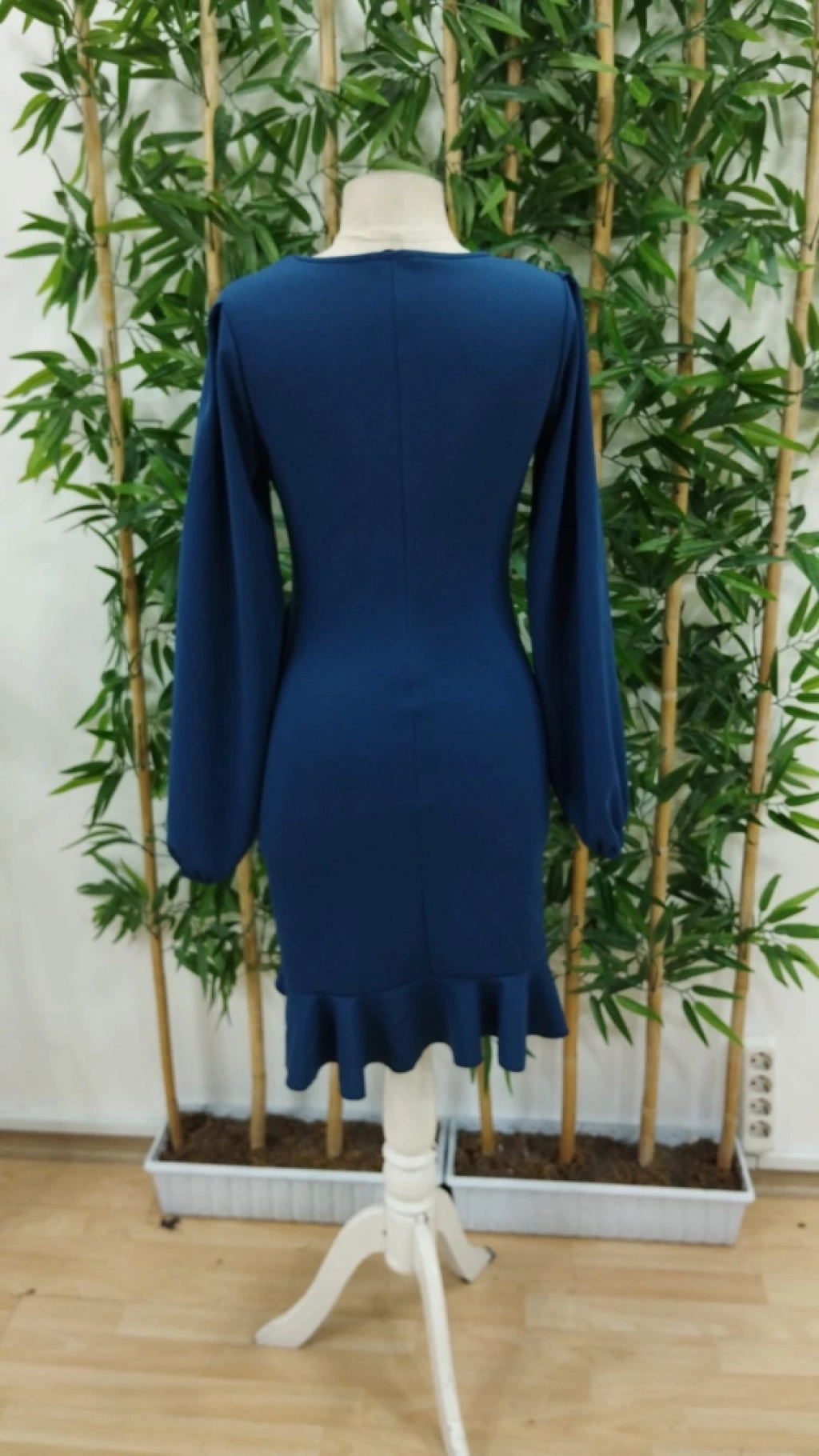Kadın Uzun Kollu Bisiklet Yaka önden Volanlı Ithal Krep Elbise