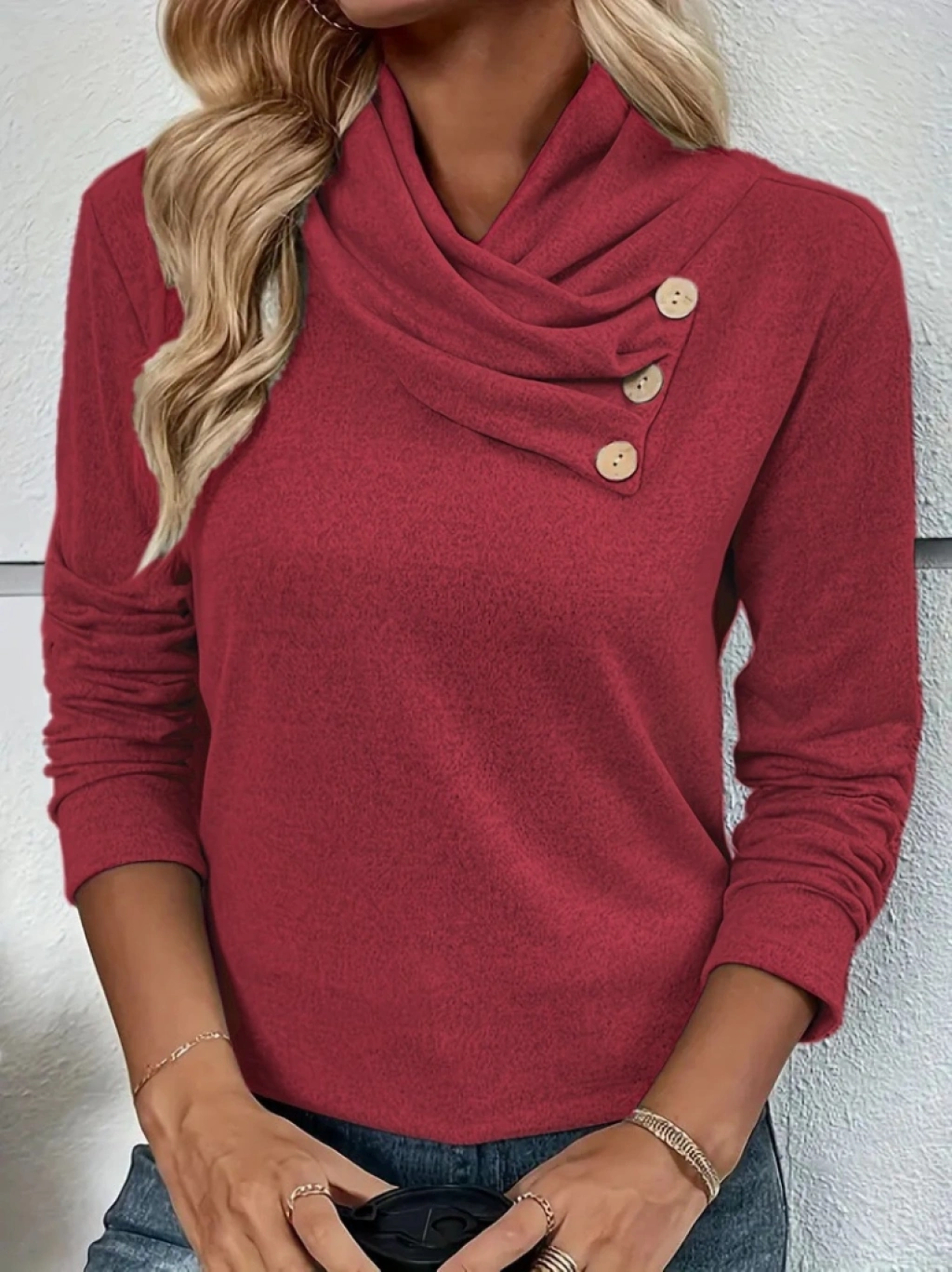 Kadın Uzun Kollu Kapişon Yaka Düğmeli Yumoş Bluz