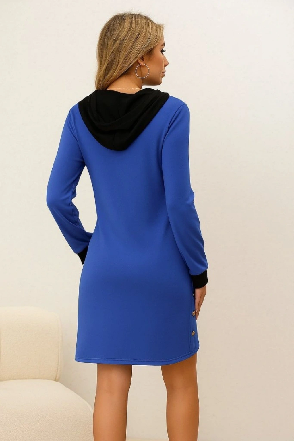 Kadın Uzun Kollu Kapşonlu önden Fermuarlı Düğmeli Mini Iki Iplik Elbise