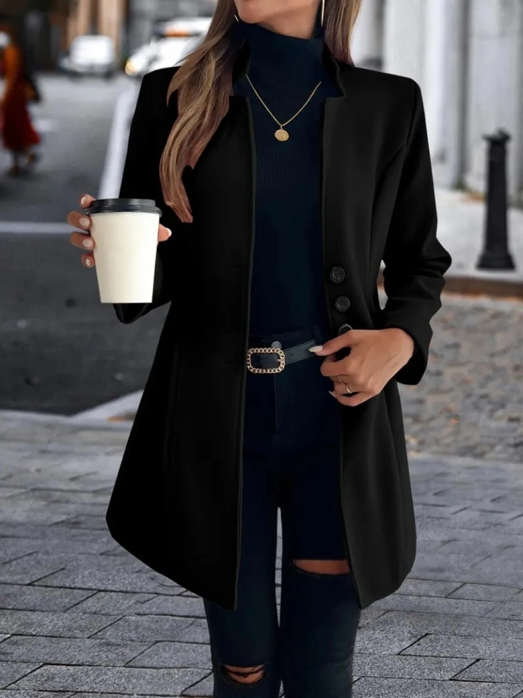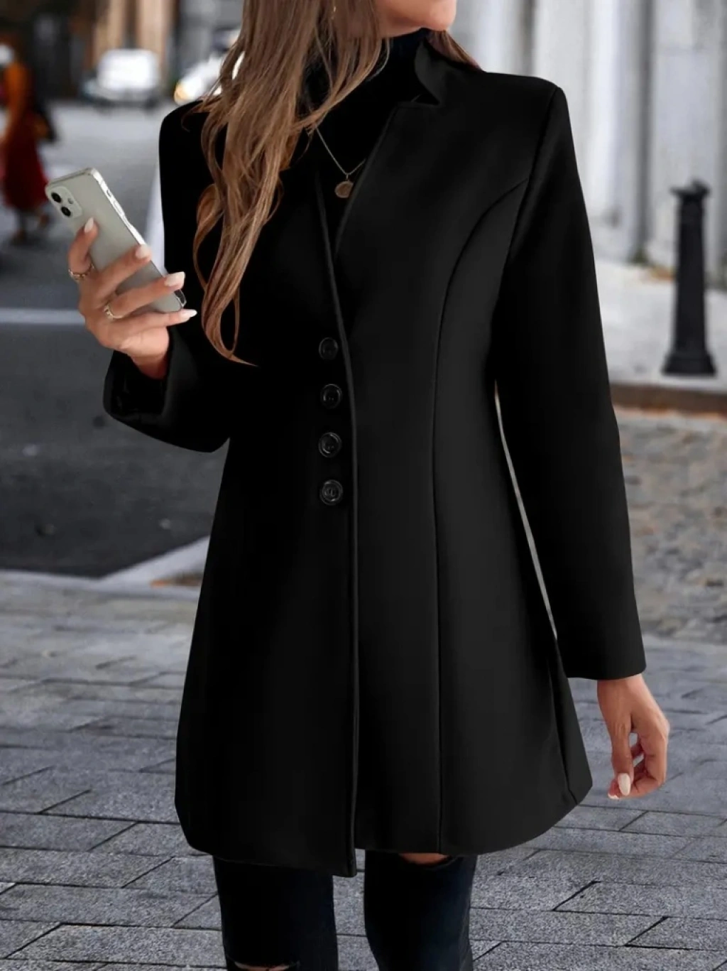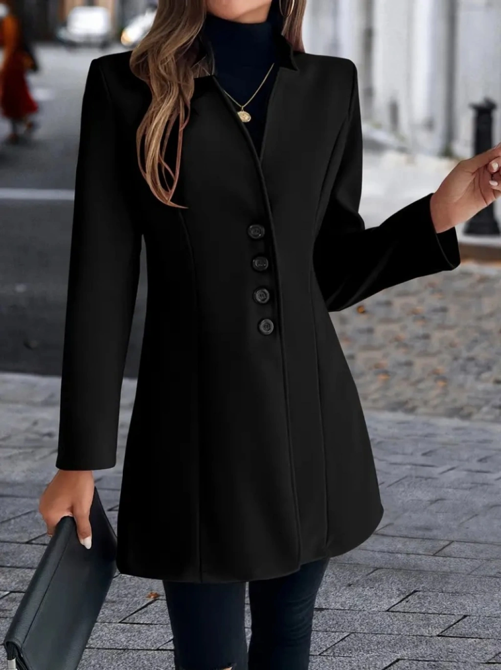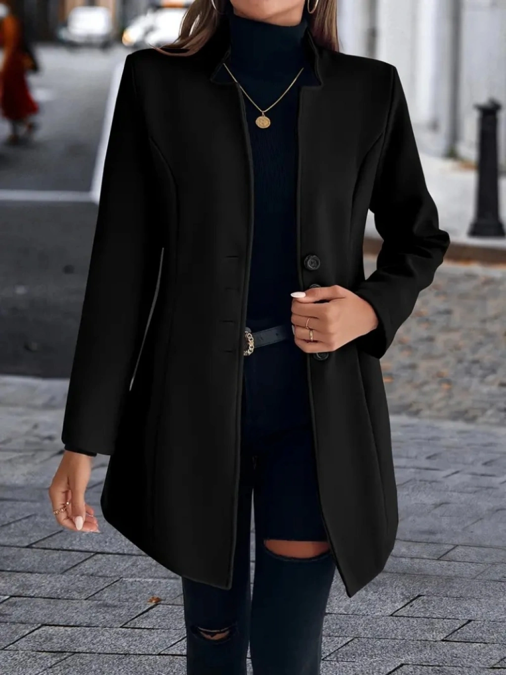 Kadın Uzun Kollu Kırlangıç Yaka önden Düğmeli Kısa Kaşe Kaban