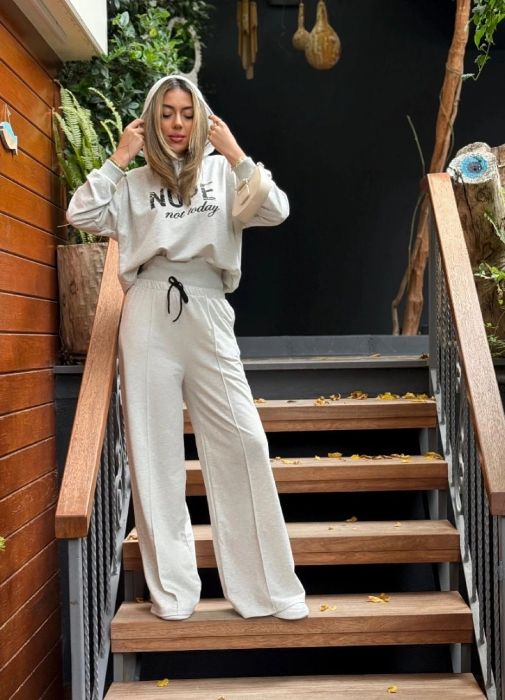 Kadın Uzun Kollu Nope Baskılı Beli Ribanalı Ikili Takım