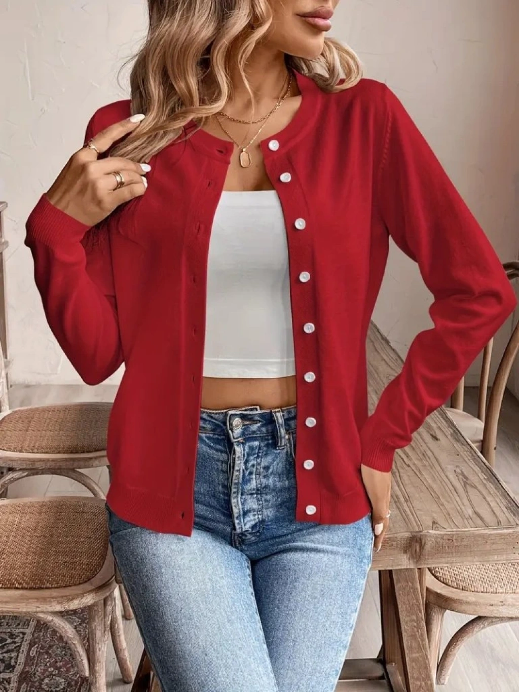Kadın Uzun Kollu önden Düğmeli Triko Ceket