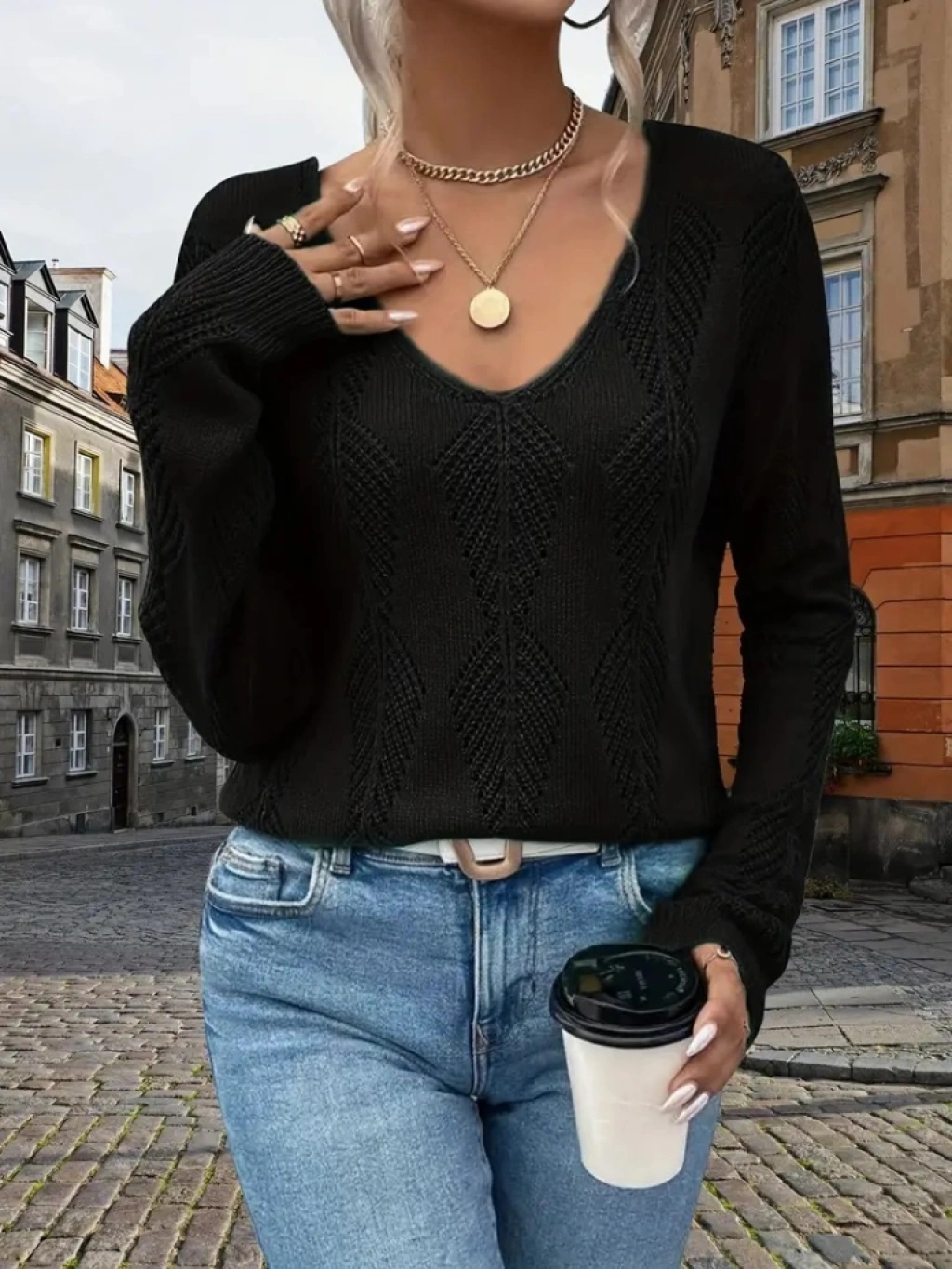 Kadın Uzun Kollu V Yakalı Arkası Düğmeli Triko Bluz