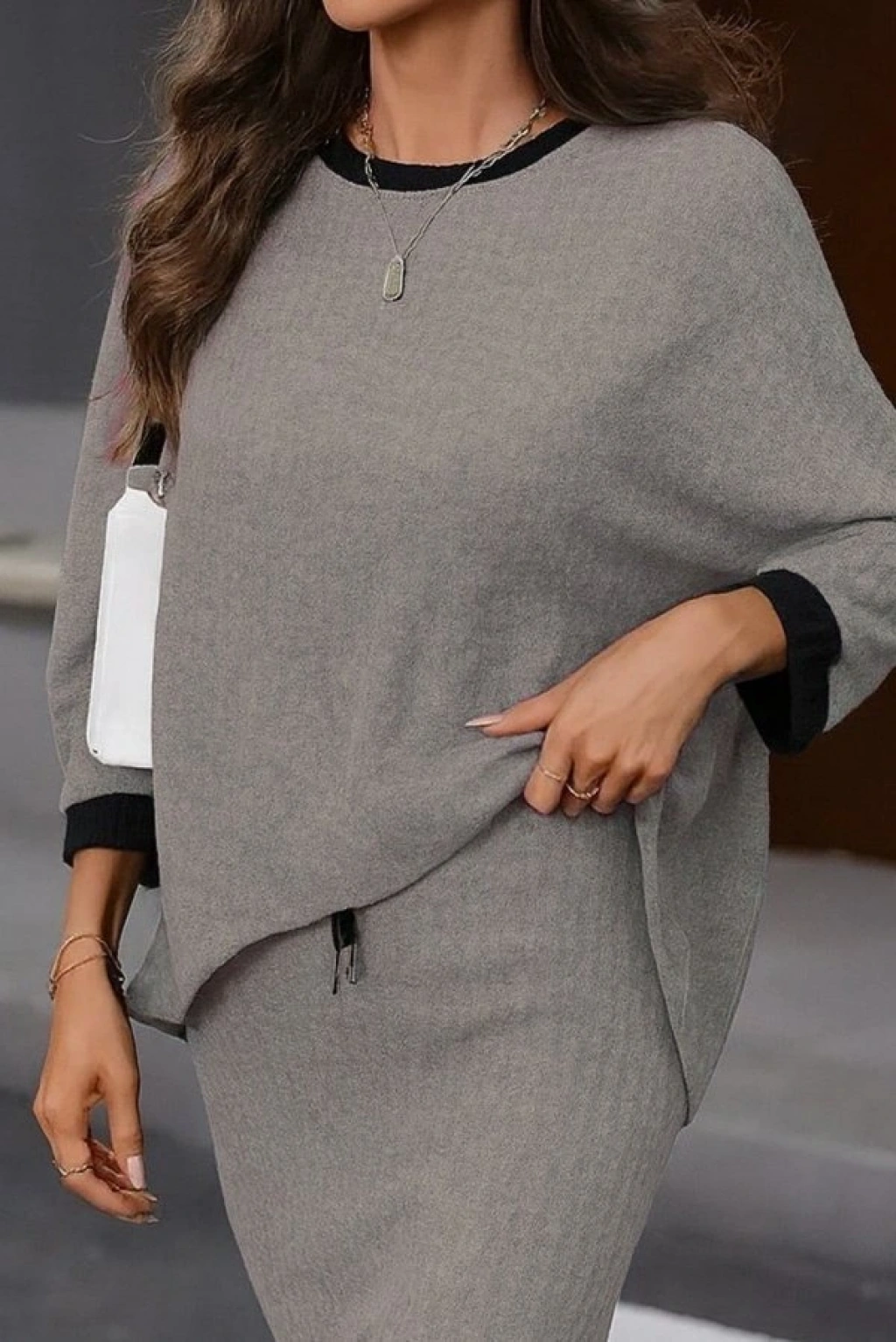 Kadın Uzun Kollu Yakası Açık şardonlu Kaşkorse Bluz Ve Eteği Bağcıklı Ikili Takım