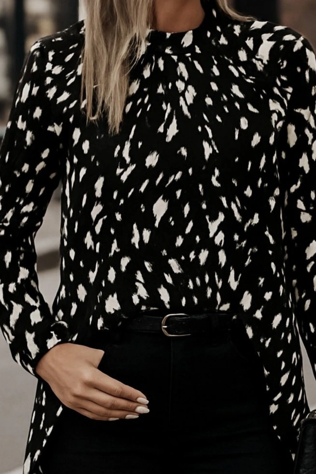 Kadın Uzun Kollu Yarı Balıkçı Yaka Desenli Dokuma Bluz