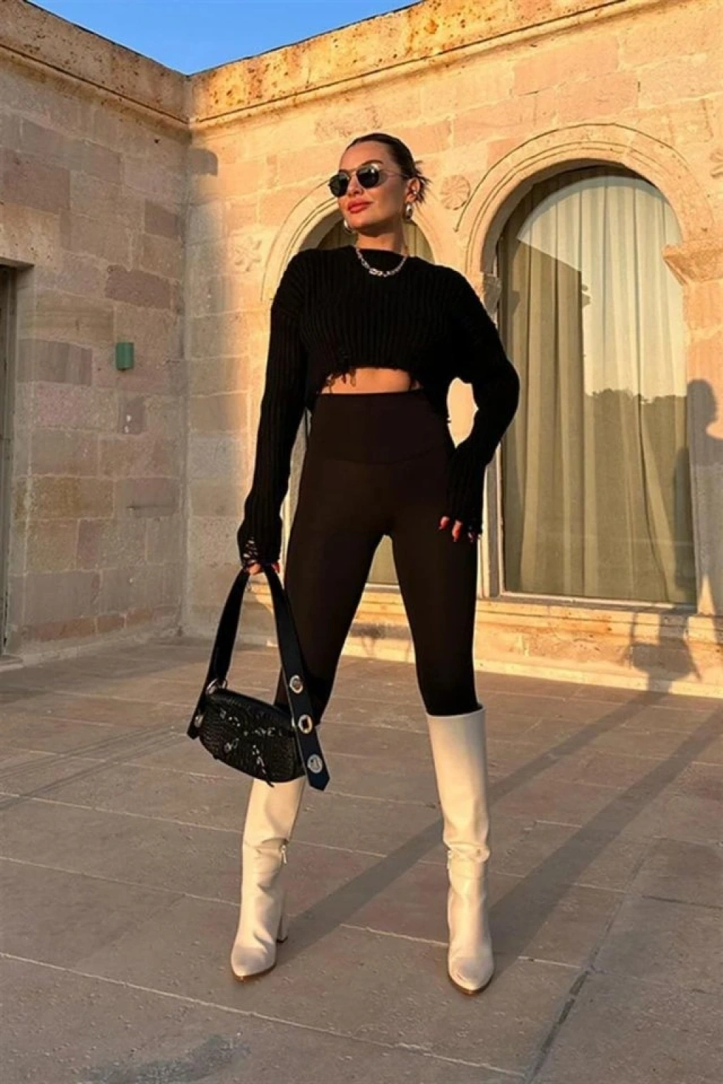 Kadın Uzun Yüksek Bel şardonlu Toparlayıcı Tayt