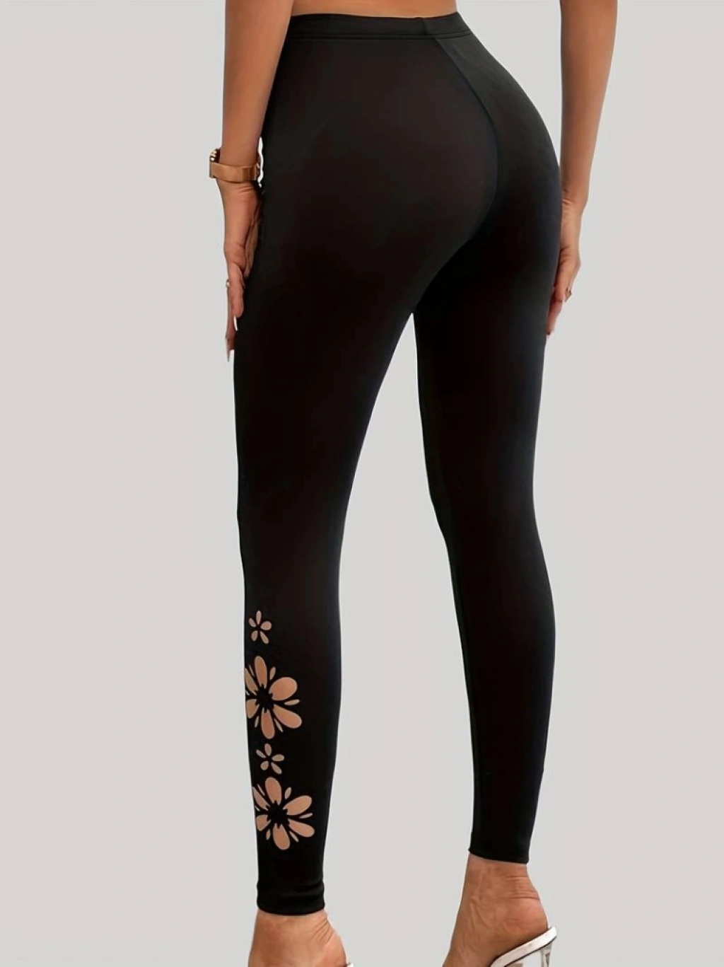 Kadın Yanları Lazer çiçek Kesim Yüksek Bel Dalgıç Tayt
