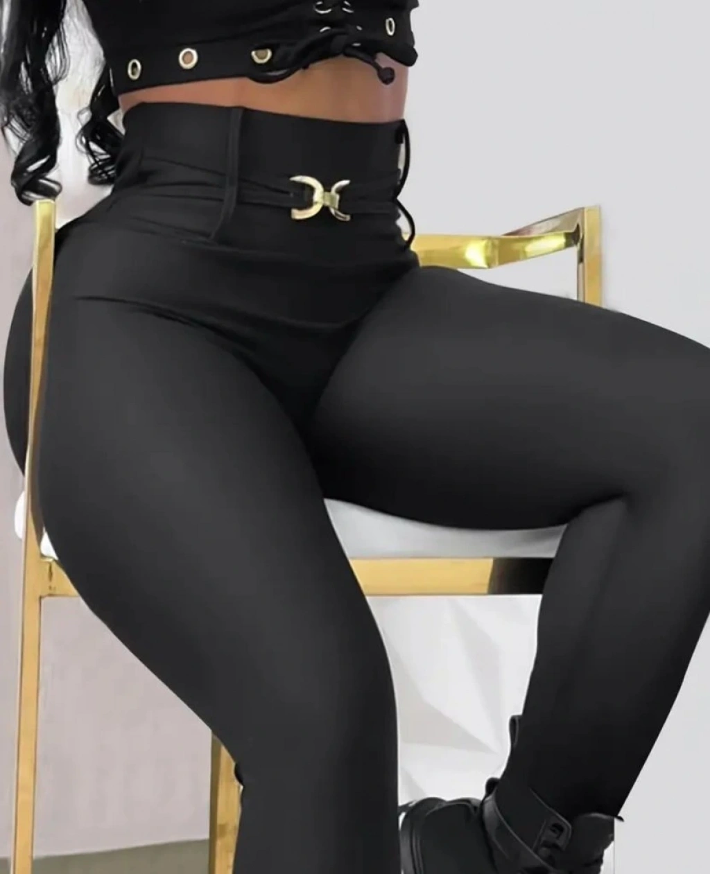 Kadın Yüksek Bel Belden Toka Detaylı Dalgıç Tayt
