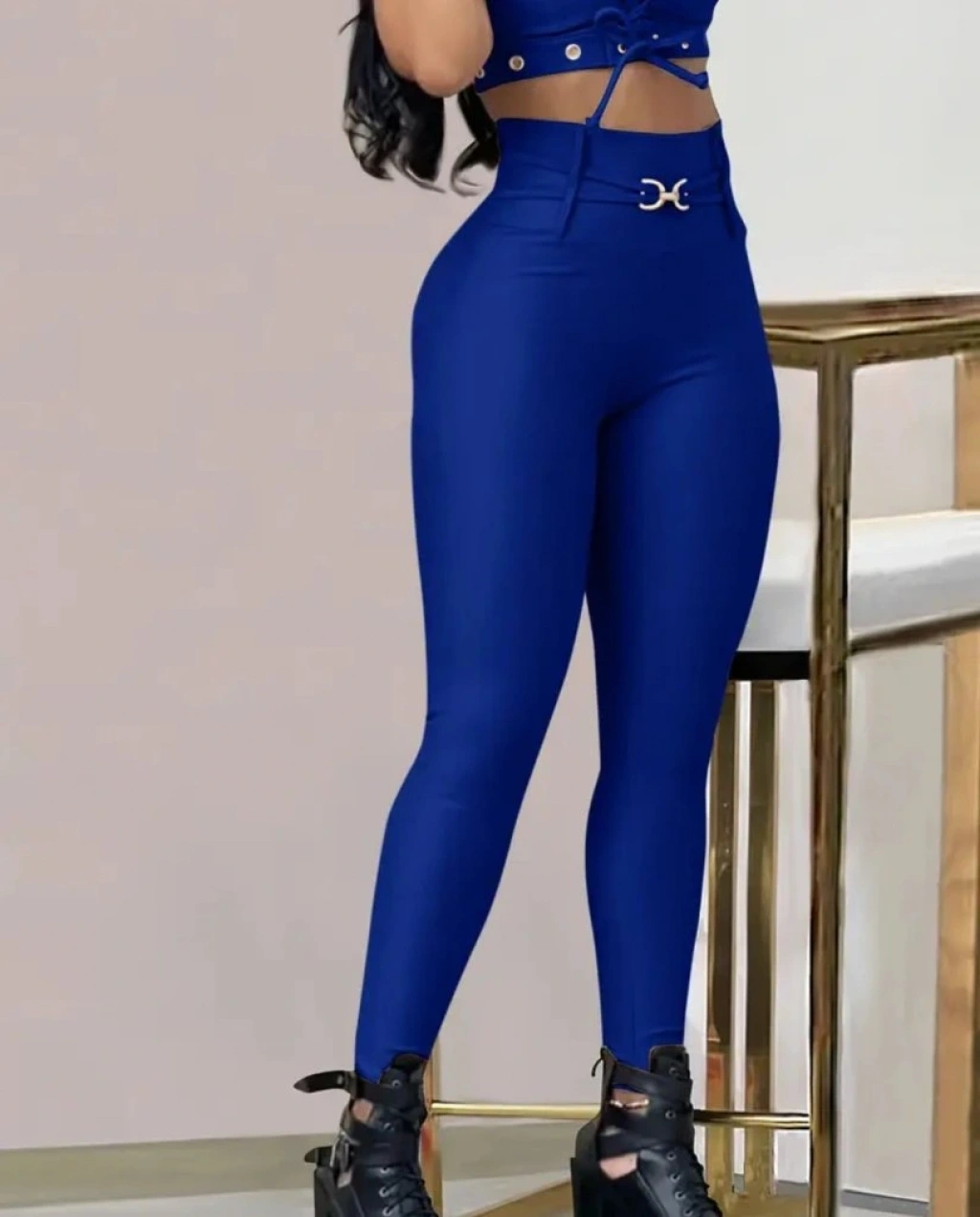 Kadın Yüksek Bel Belden Toka Detaylı Dalgıç Tayt