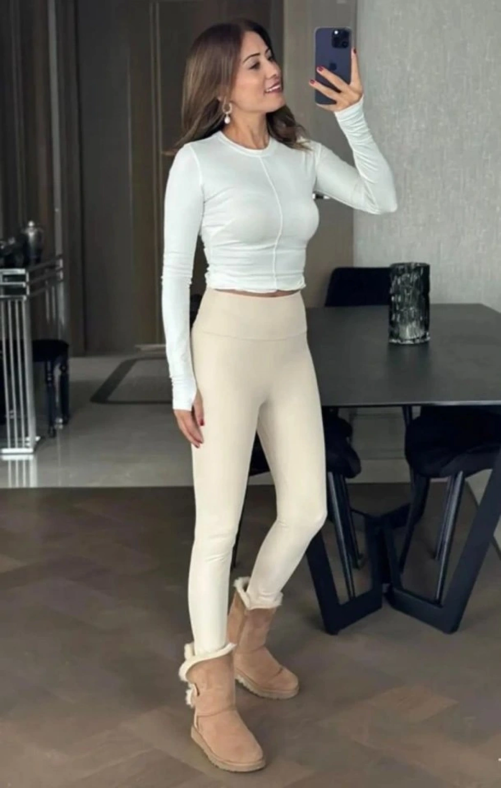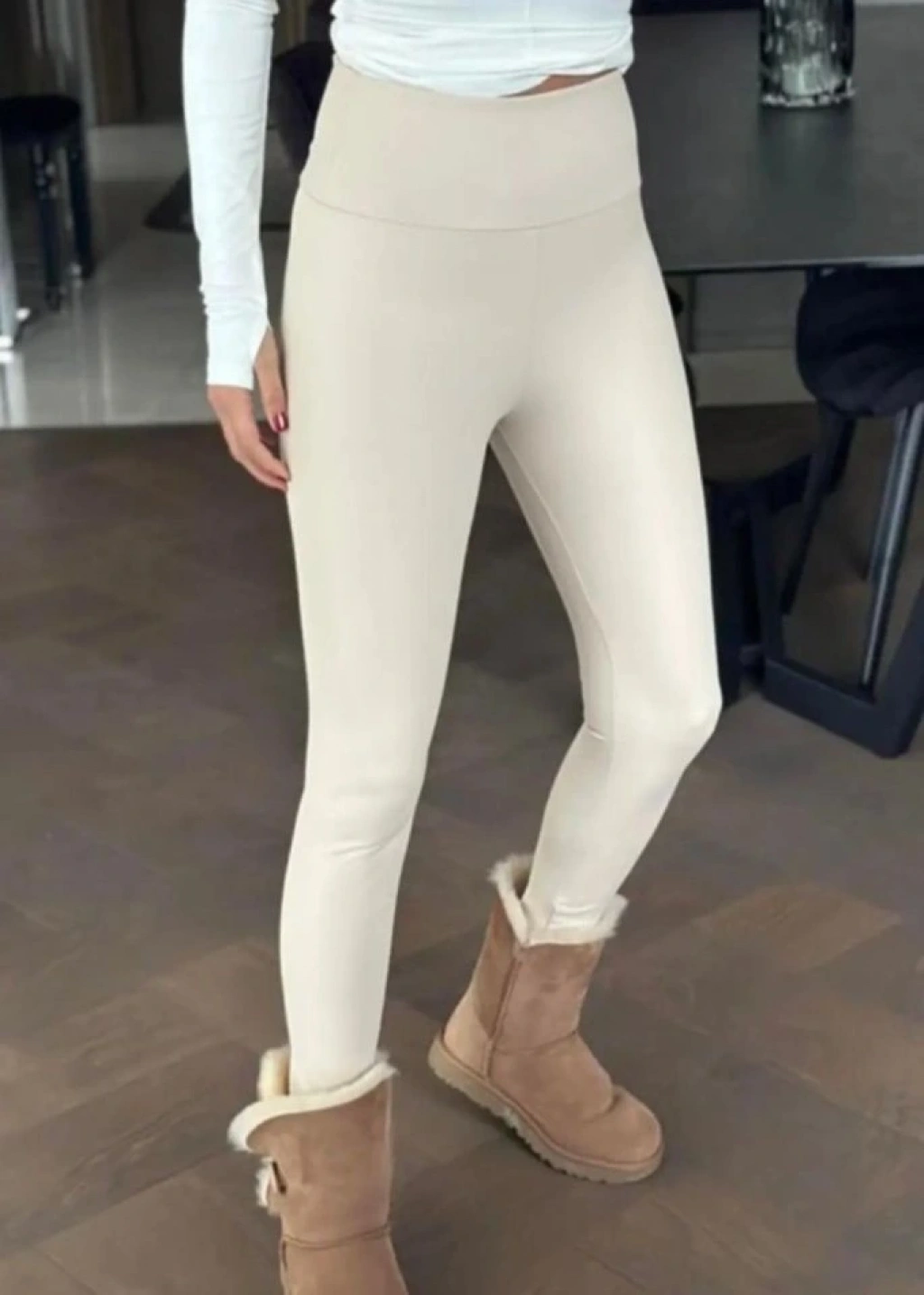 Kadın Yüksek Bel şardonlu Full Likralı Mat Deri Tayt