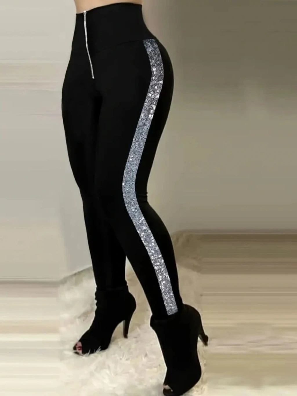 Kadın Yüksek Bel Yan şerit Detaylı Dalgıç Tayt