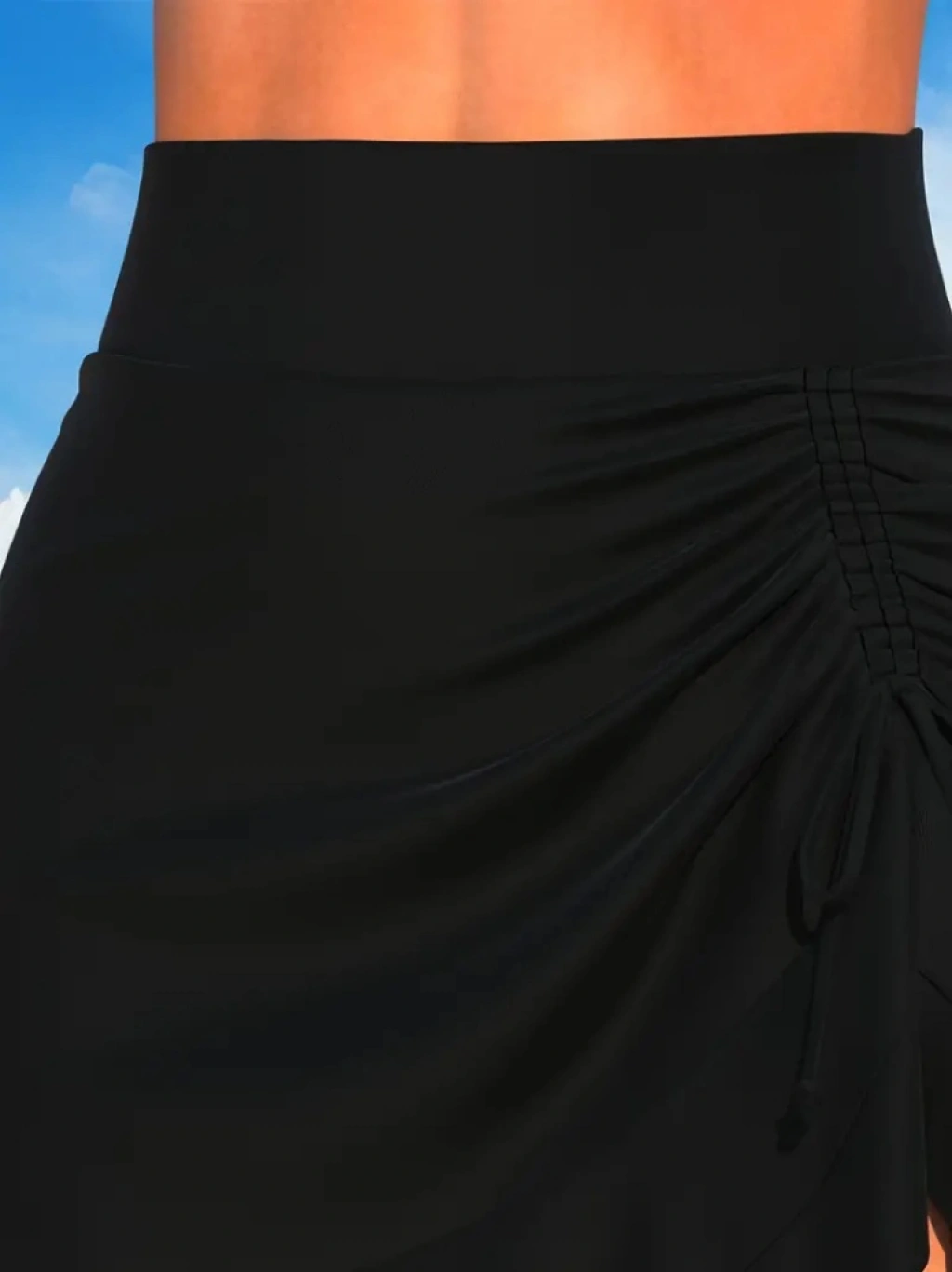 Kadın Yüksek Bel Yandan Büzgülü Fırfırlı Kısa Sandy Etek