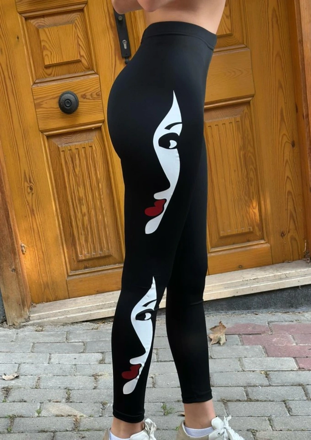 Kadın Yüz Baskılı Dalgıç Kumaş Tayt