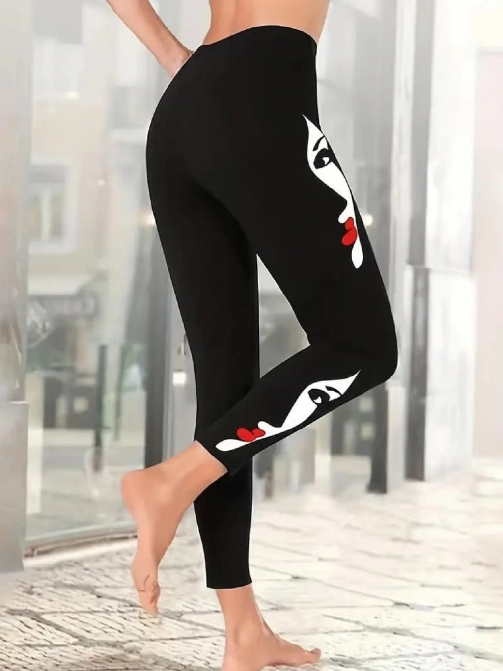 Kadın Yüz Baskılı Dalgıç Kumaş Tayt