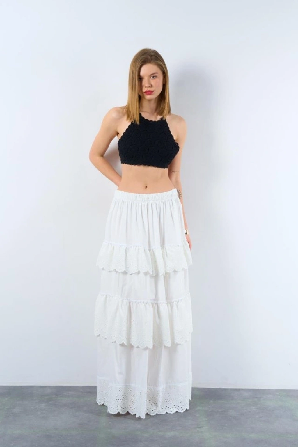 Modelin Ölçüleri: Boy:165, Kg:55, Göğüs:90, Bel:72, Kalça: 100