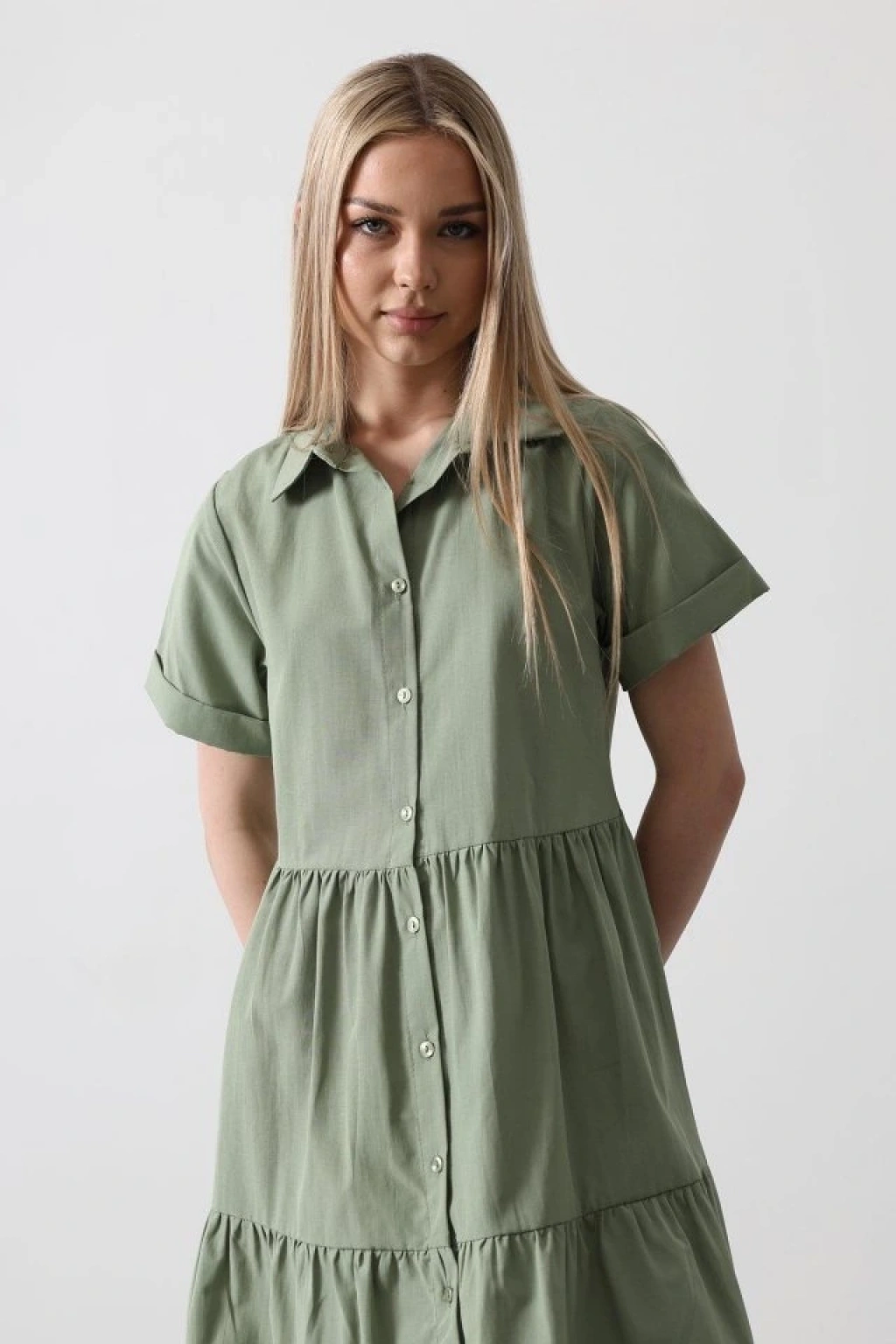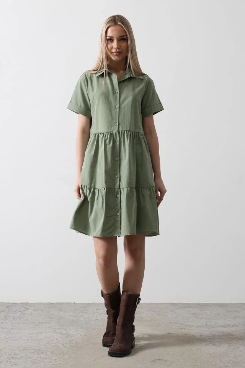 Kısa Kol Düğmeli Elbise - Haki