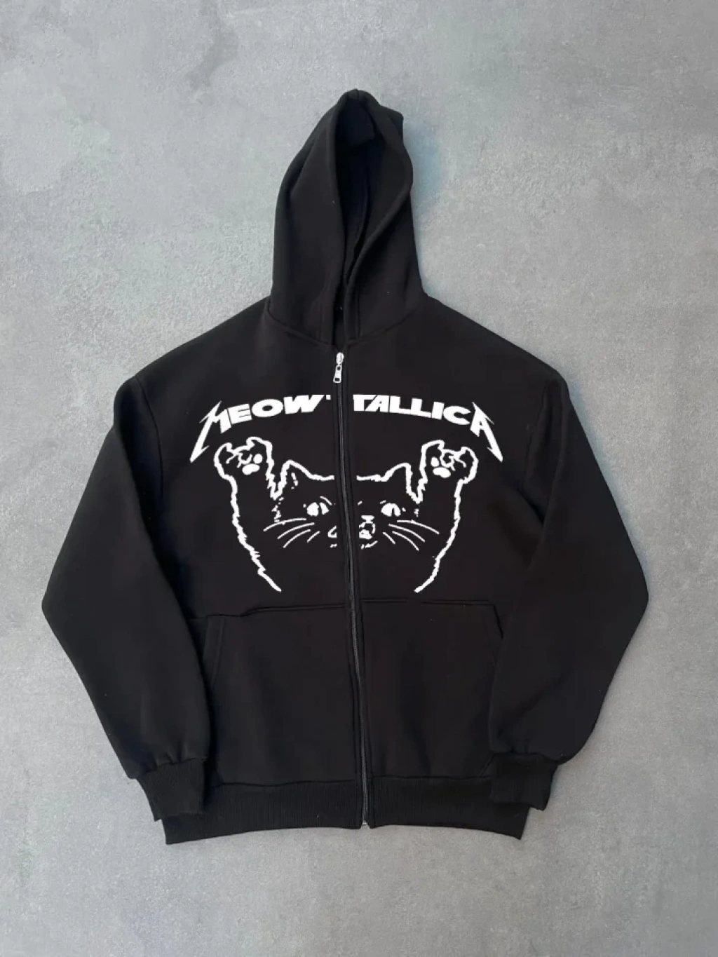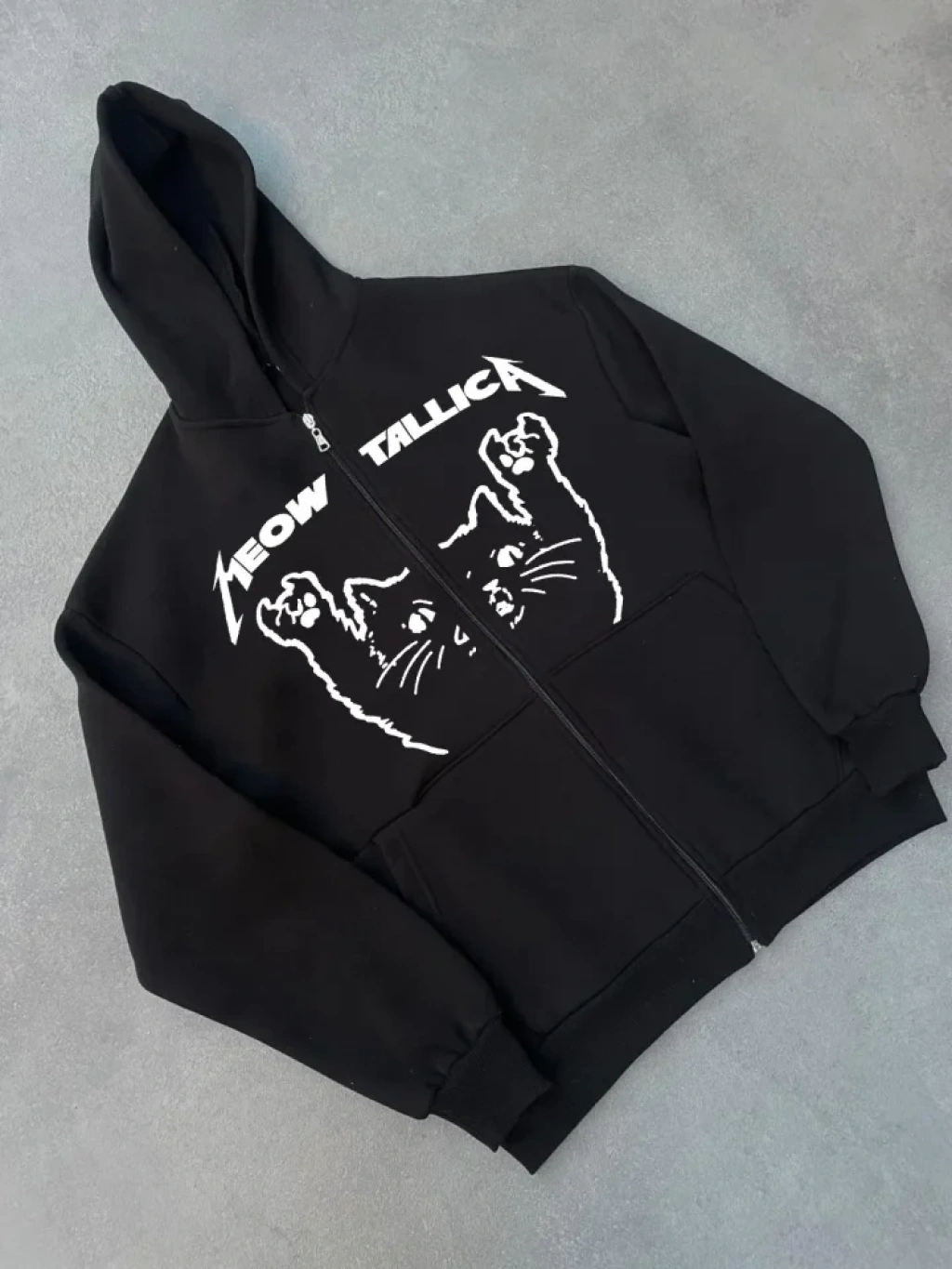 Kışlık Baskılı Fermuarlı Kapüşonlu Hırka iyah