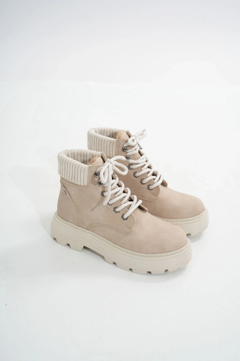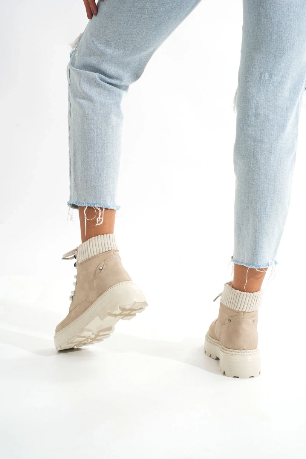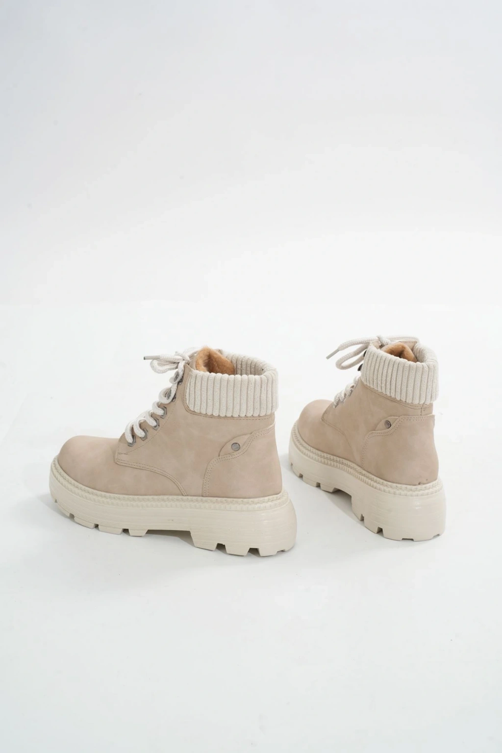 LMÇ-2045 Bej Süet Bağcıklı Kalın Taban Kadın Günlük Bot