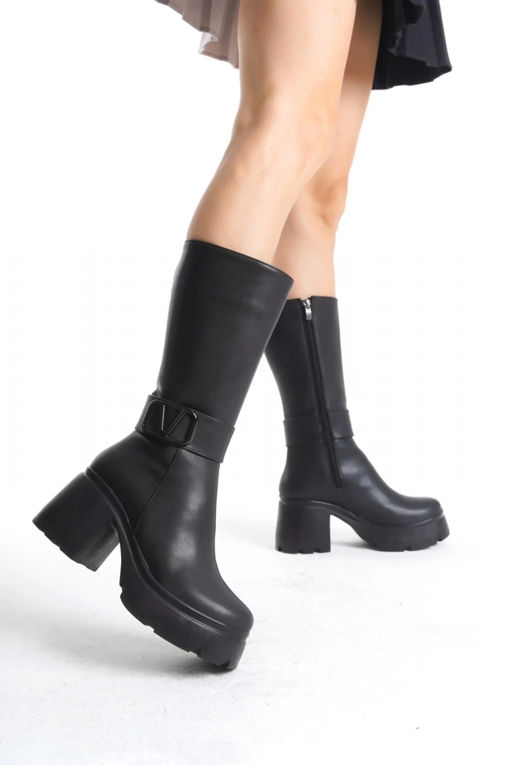 Detay: Topuklu Yandan Fermuarlı Çizme