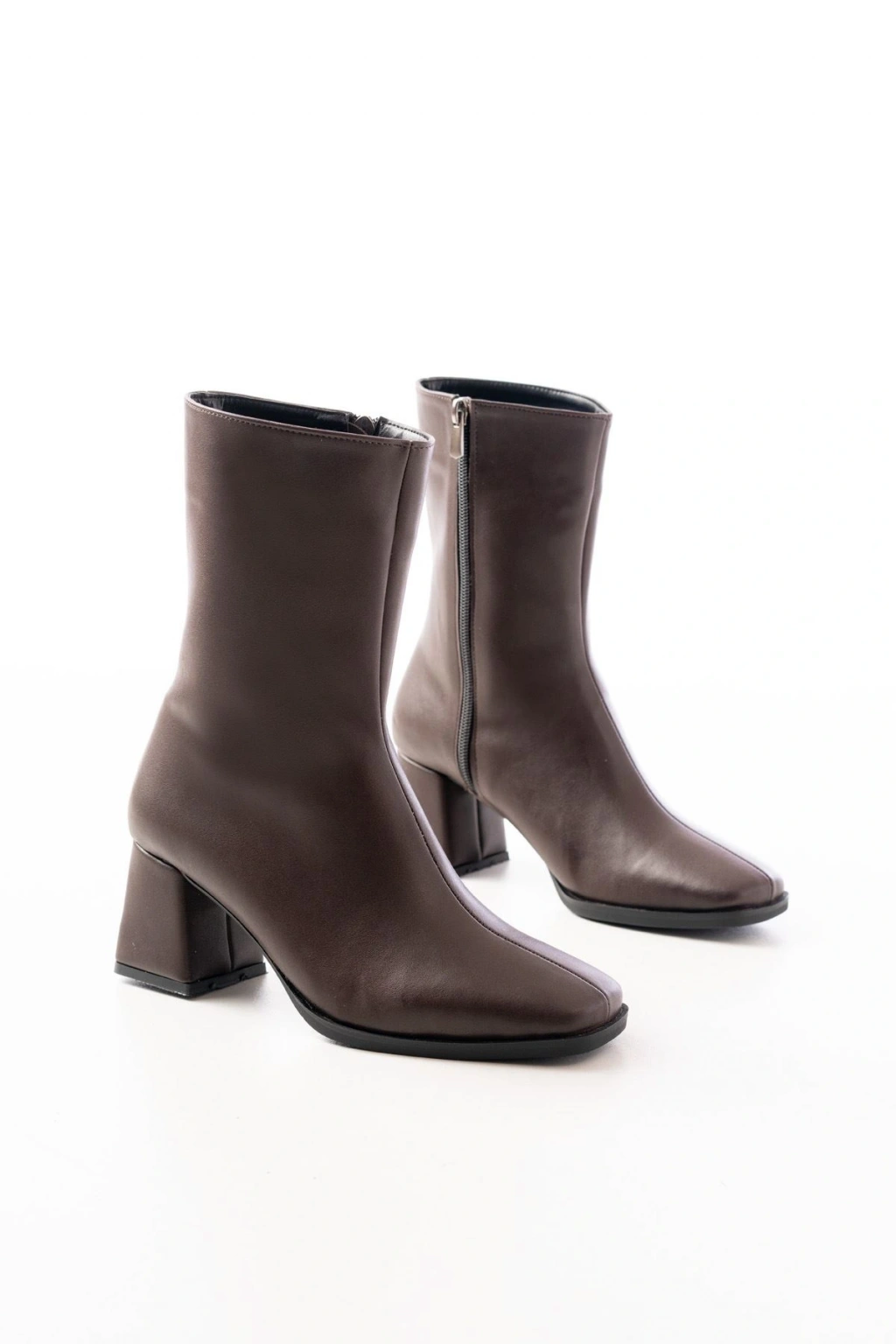MSK-032 Kahve Topuklu Fermuarlı Kadın Bot