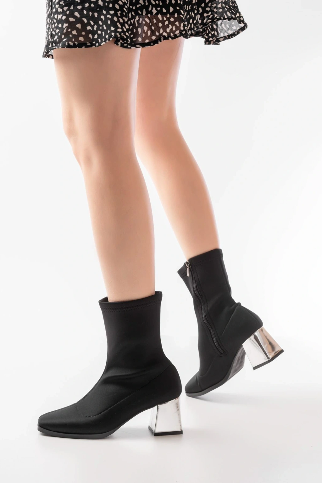 MSK-033 Dalgıç Siyah Topuklu Fermuarlı Kadın Bot