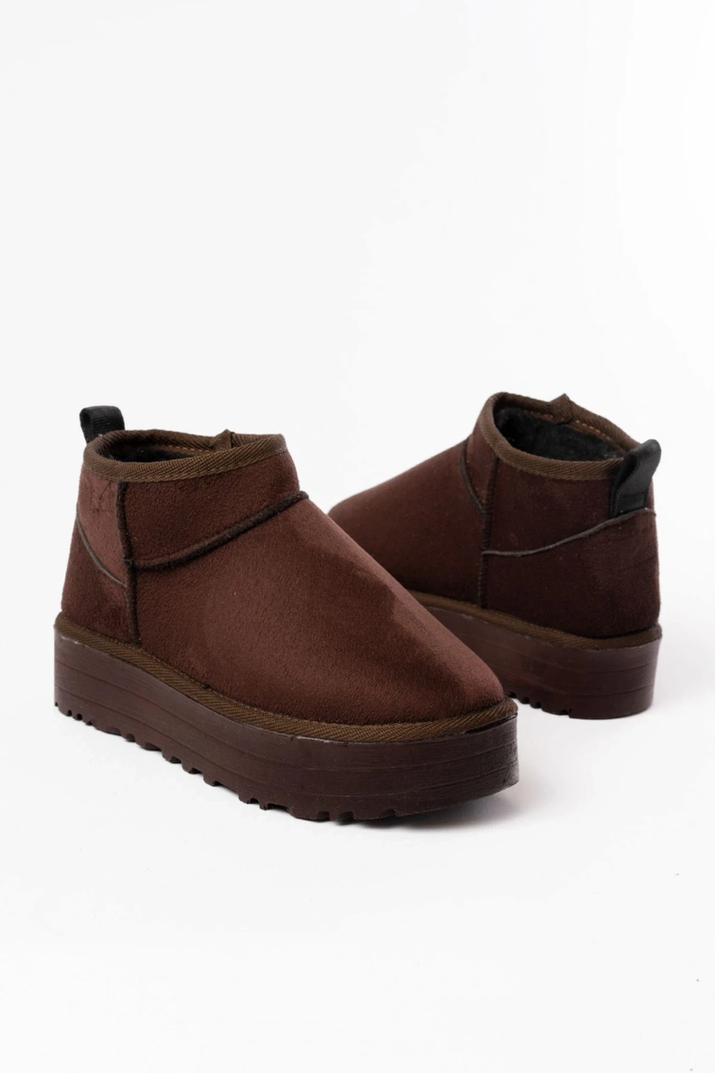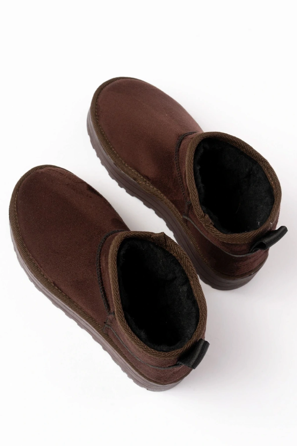 NDR-2850 Kahverengi Süet İçi Kürklü Kışlık Kapalı Burun Kadın Günlük Terlik
