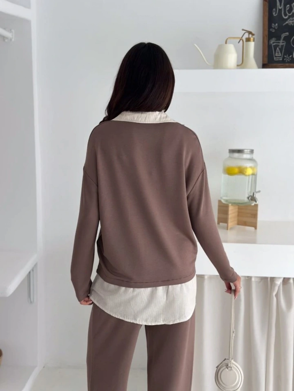 Polo Yaka Gömlek Detay Salaş Balon Pantolunlu ıkılı Takım
