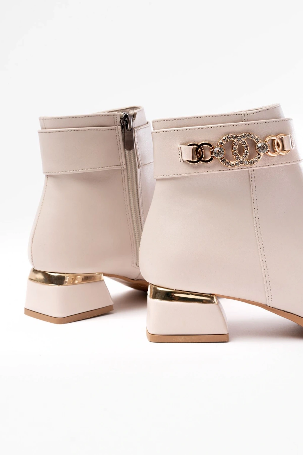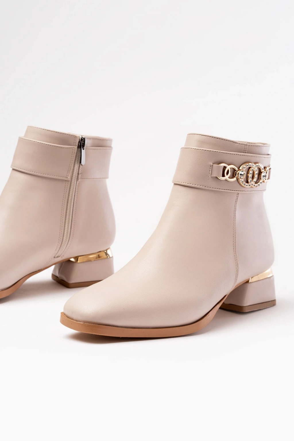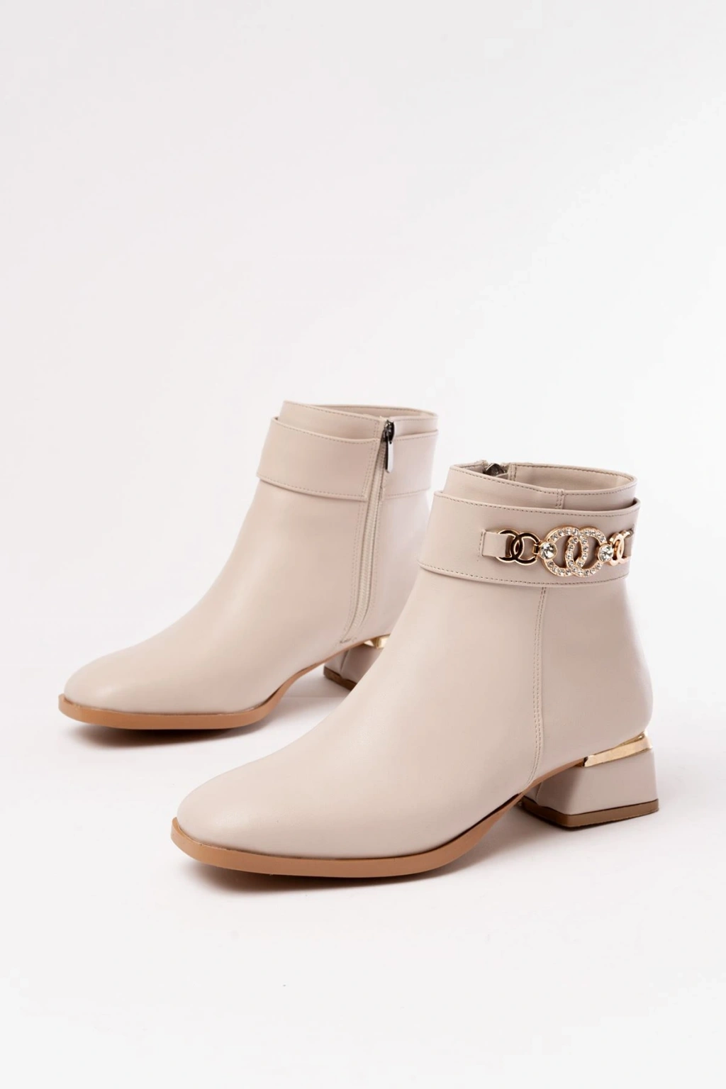 RM-502 Bej Toka Aksesuarlı Topuklu Fermuarlı Günlük Kadın Bot