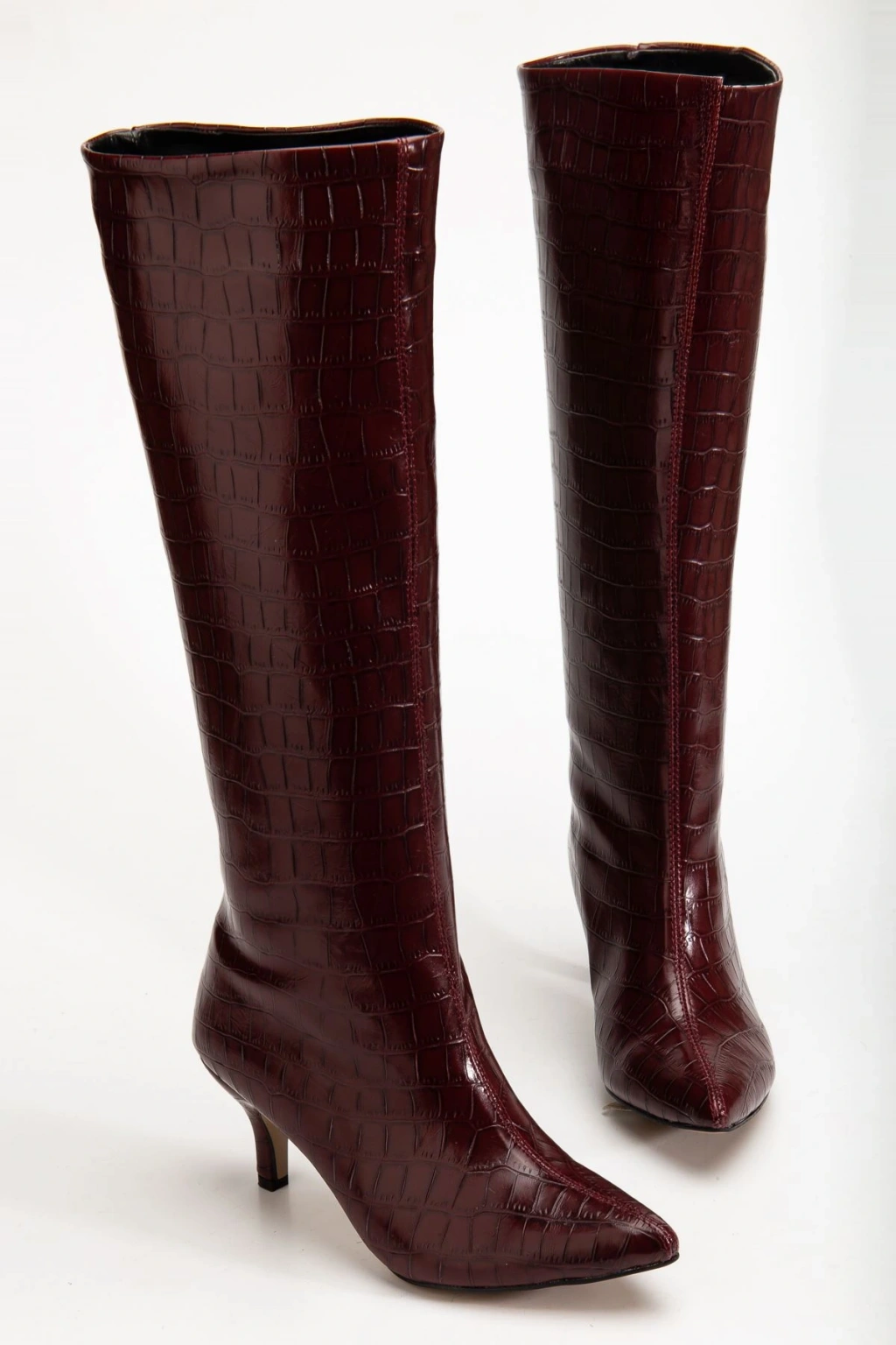 SYT-2025 bordo Kroko Günlük Kadın Çizme