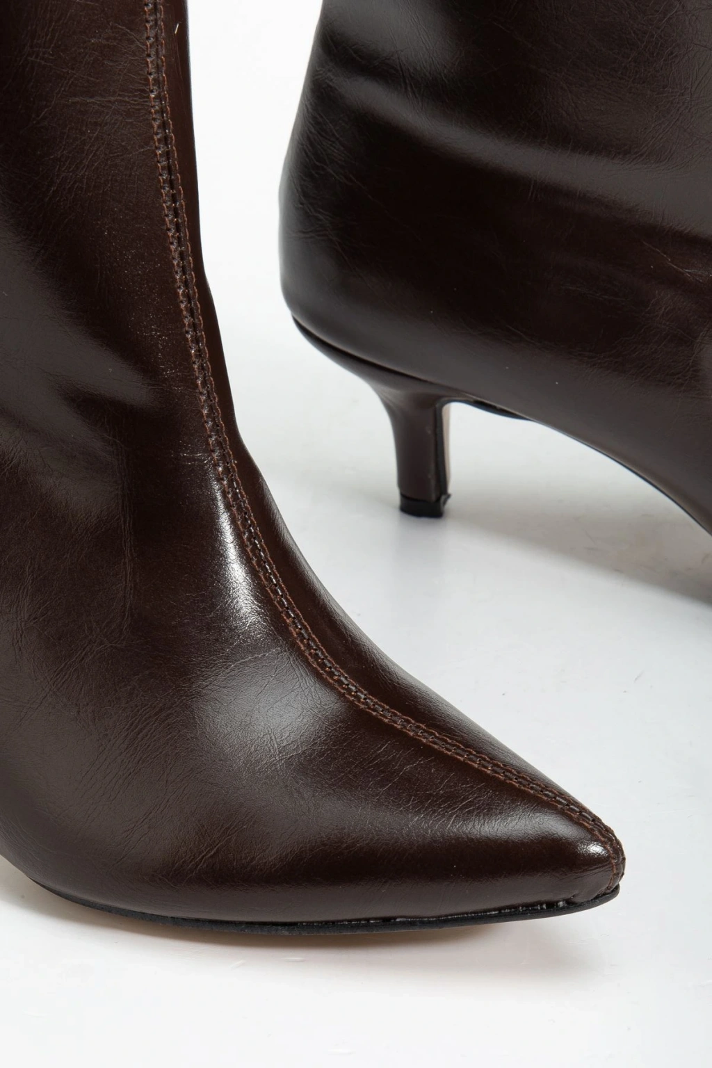 Pitay Kahverengi Cilt Körüklü Topuklu Çizme