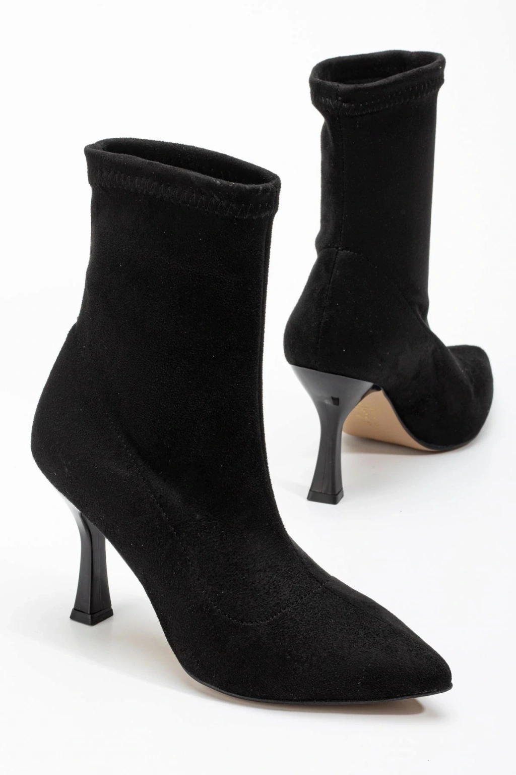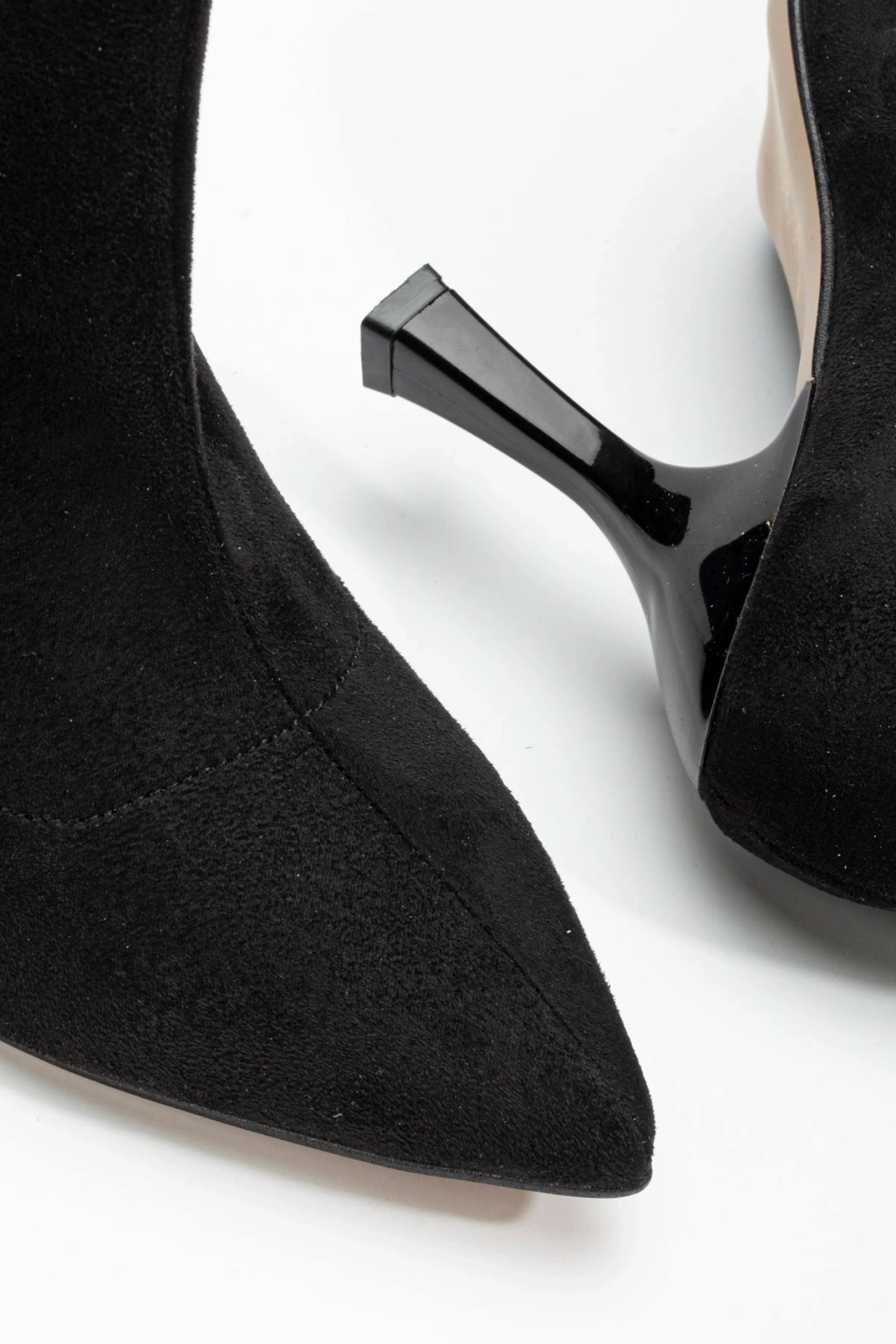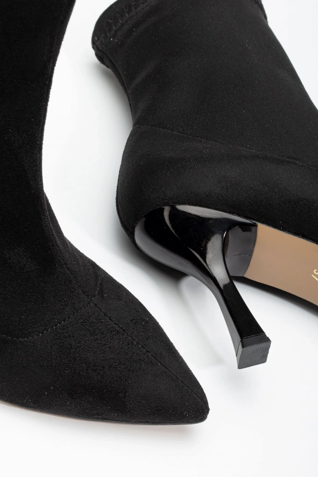 VRT-023 Siyah Süet Yüksek İnce Topuklu Streç Kadın Bot