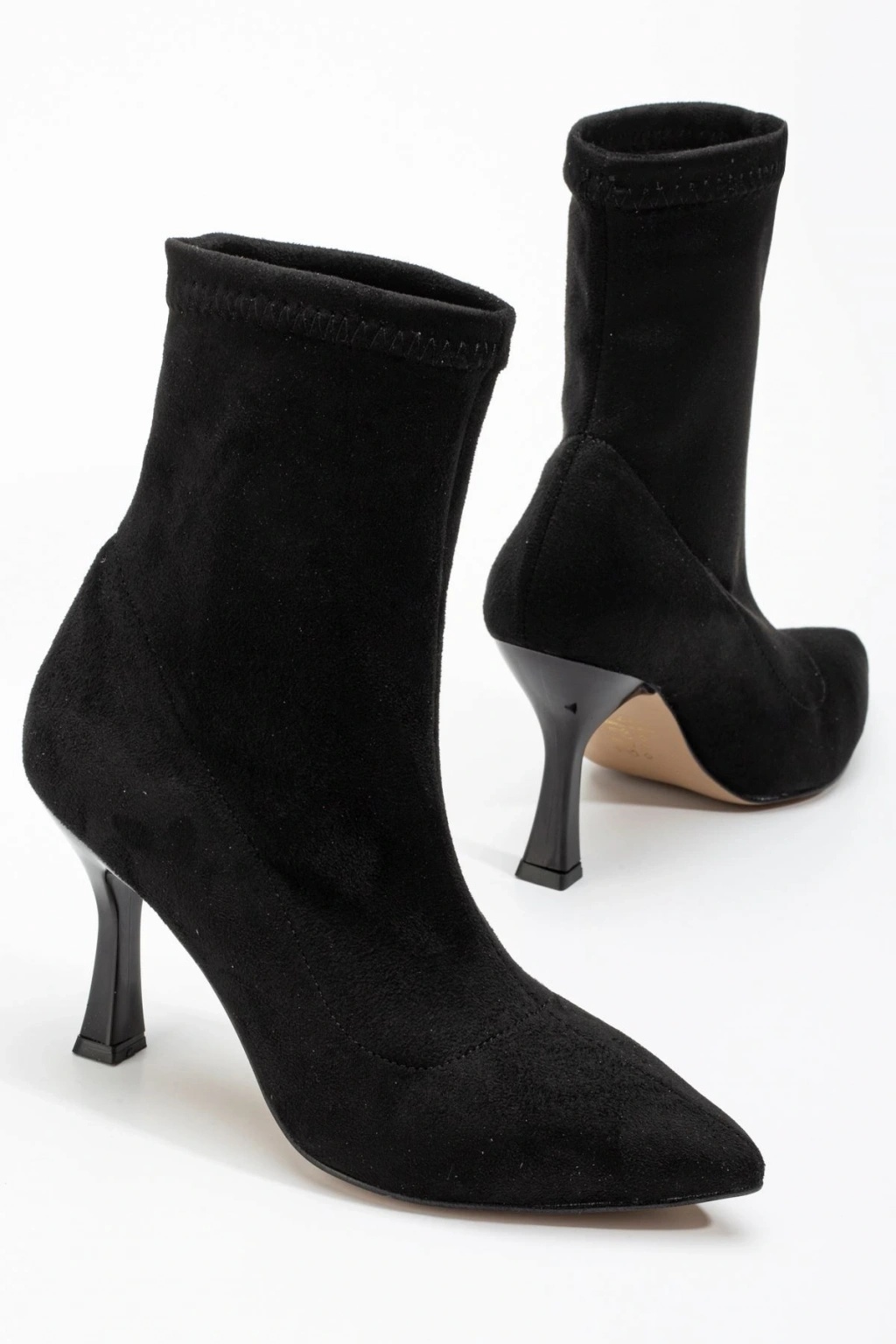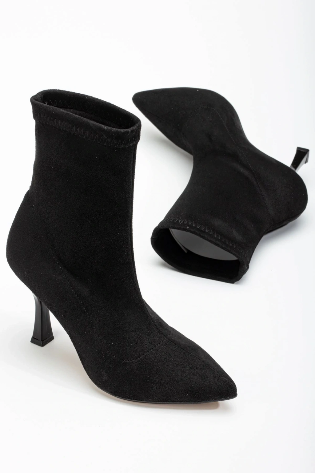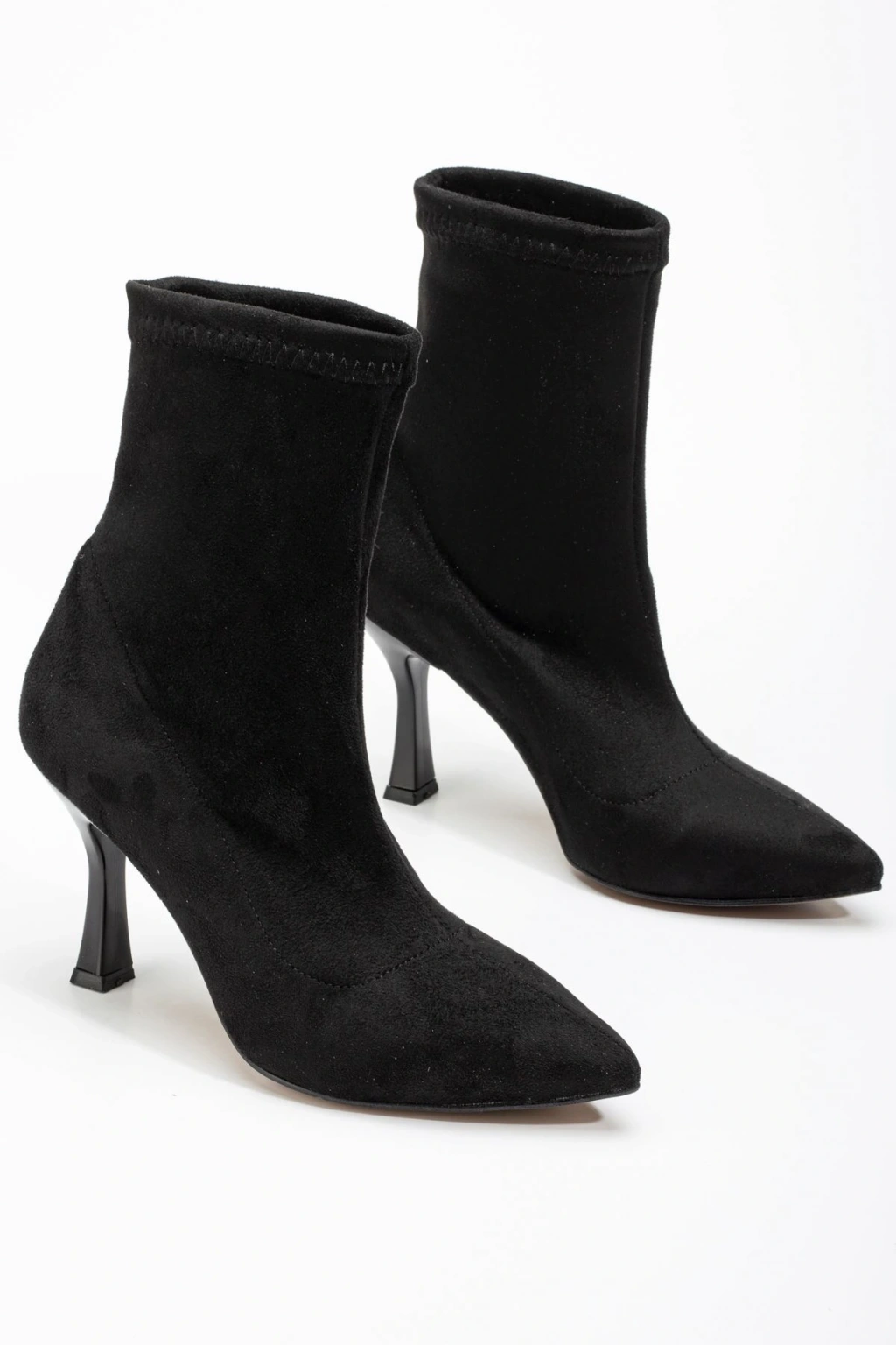 VRT-023 Siyah Süet Yüksek İnce Topuklu Streç Kadın Bot