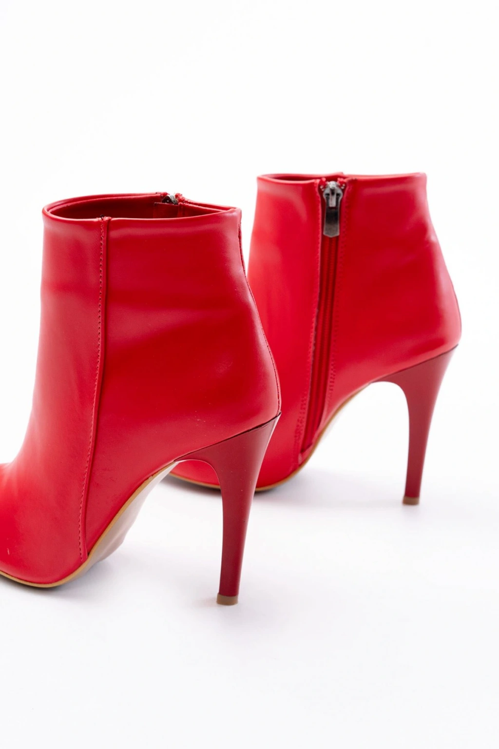 VRT-4802 Kırmızı Yüksek İnce Topuklu Fermuarlı Kadın Bot