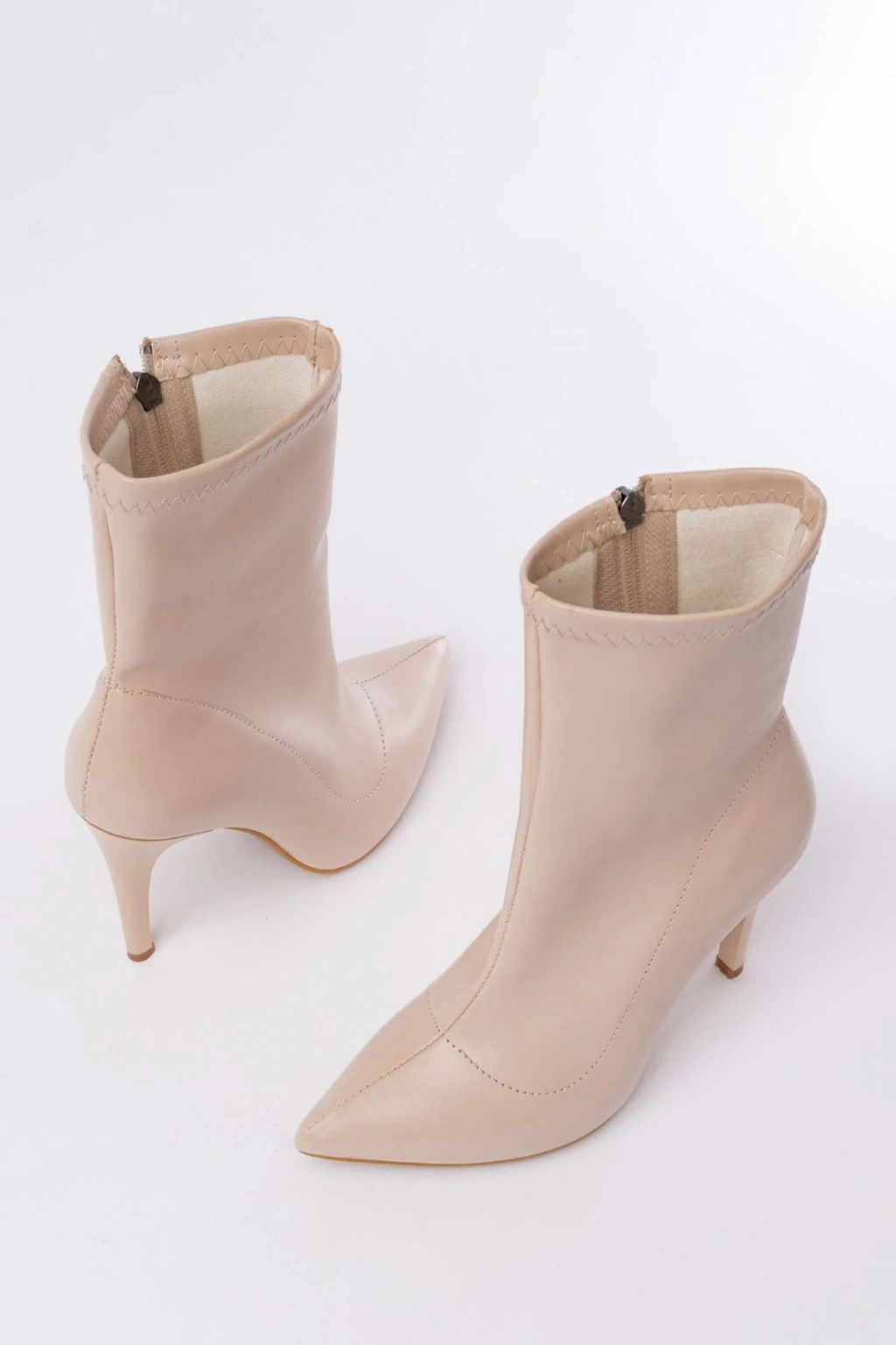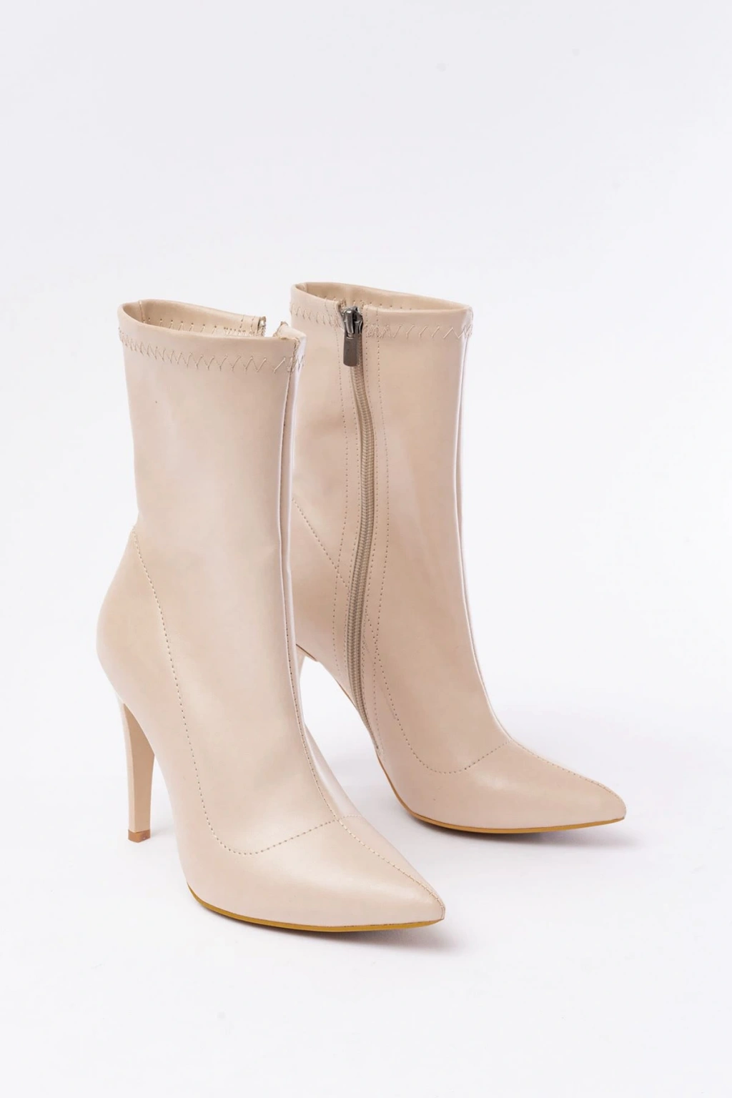 VRT-4811 Bej Yüksek İnce Topuklu Fermuarlı Kadın Bot