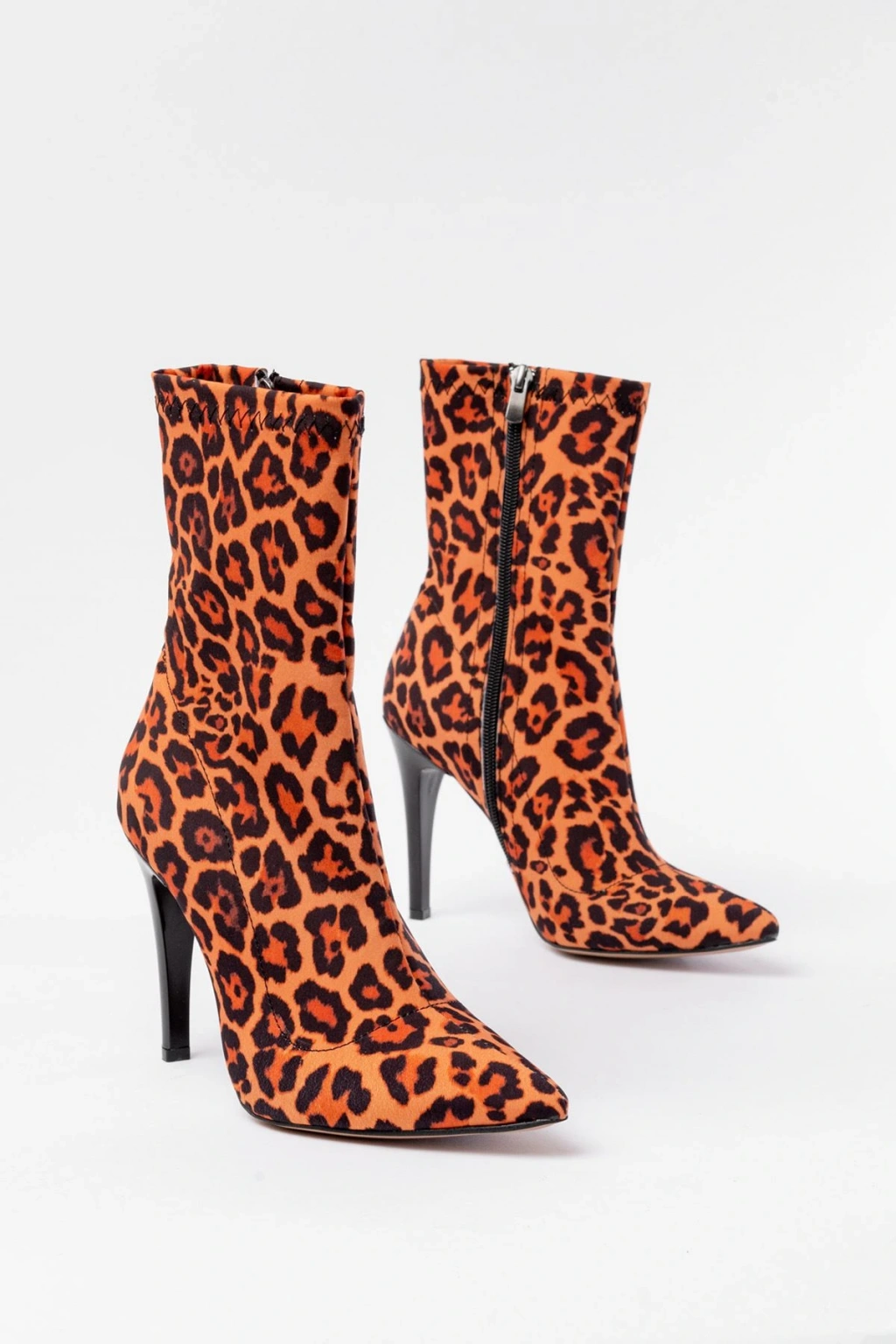 VRT-4811 Leopar Yüksek İnce Topuklu Fermuarlı Kadın Bot