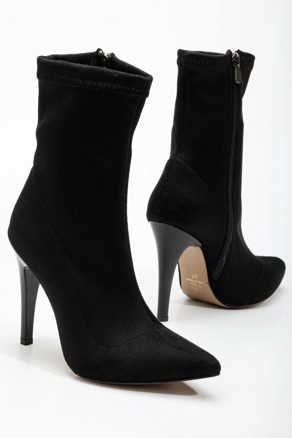 VRT-4811 Siyah Süet Yüksek İnce Topuklu Fermuarlı Kadın Bot