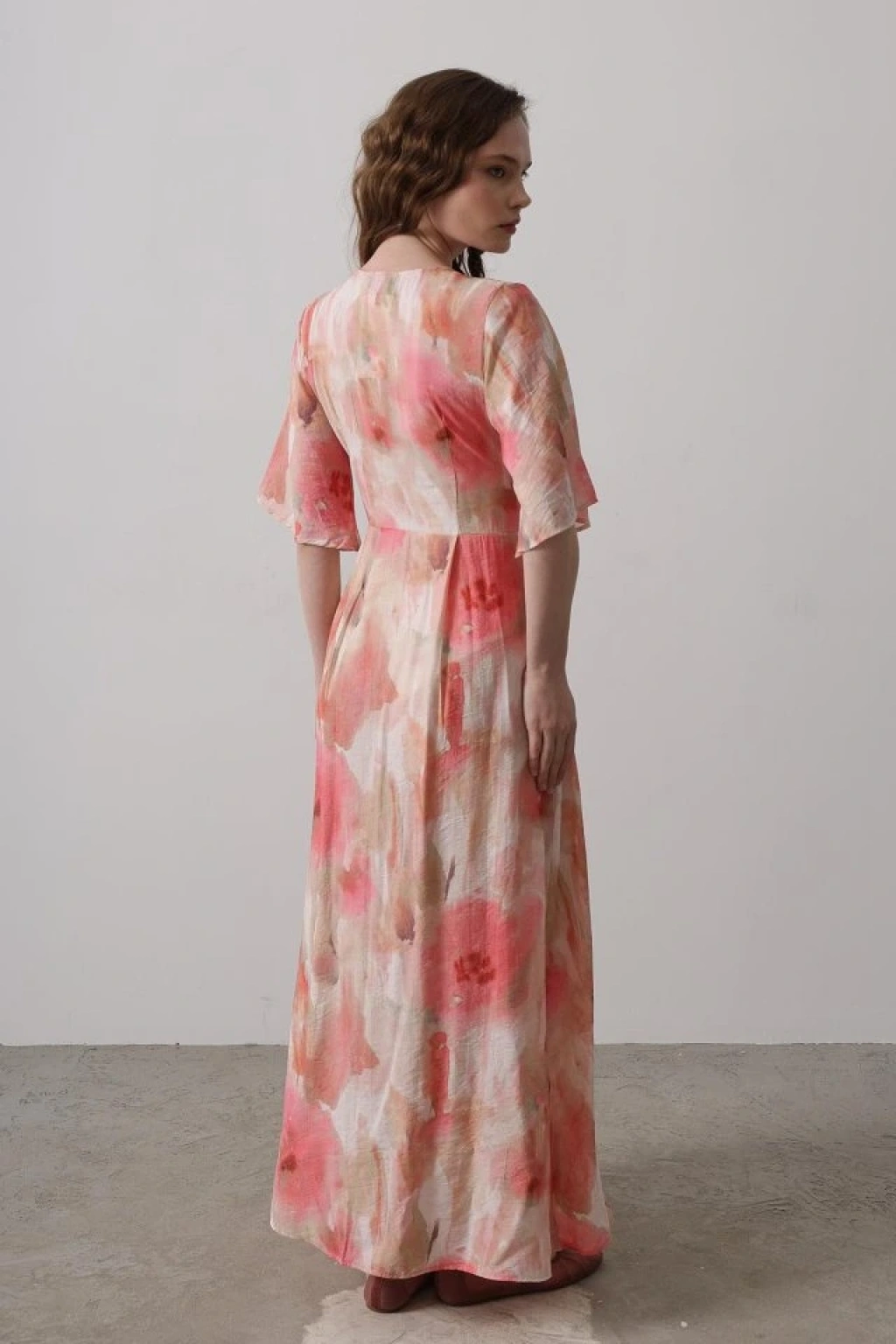Yandan Bağlamalı Desenli Elbise - Pembe